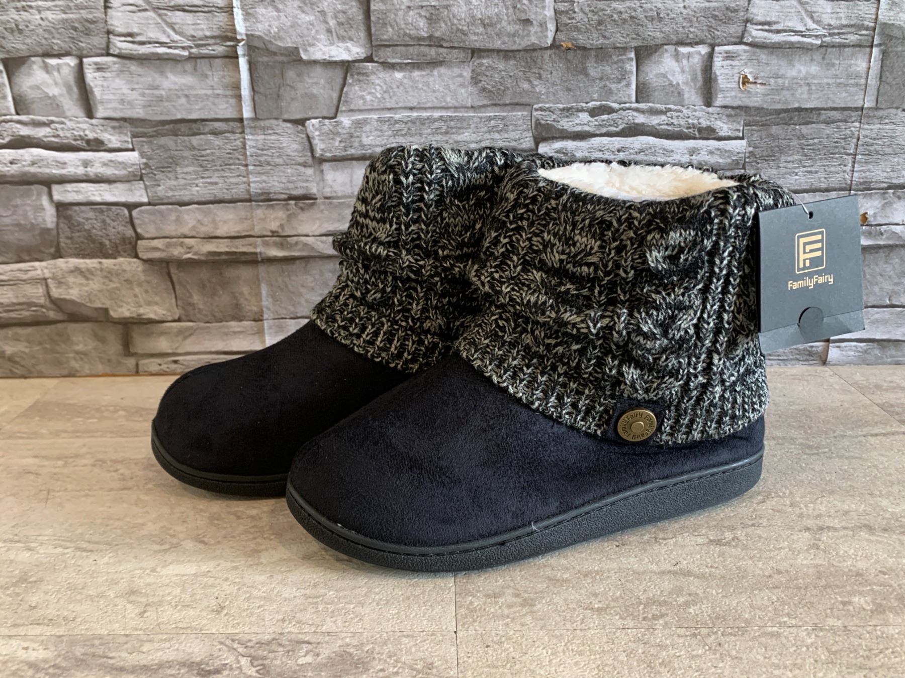 Family Fairy Womens Micro Suede Knit Slipper Boots Black Size Medium