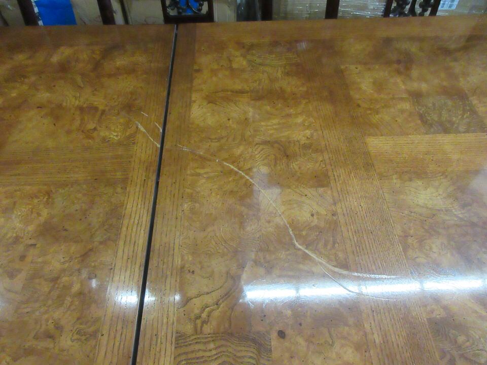 Includes 2 leaves. Table top measurement with out leaves is 68" x 44". Large scratch on surface