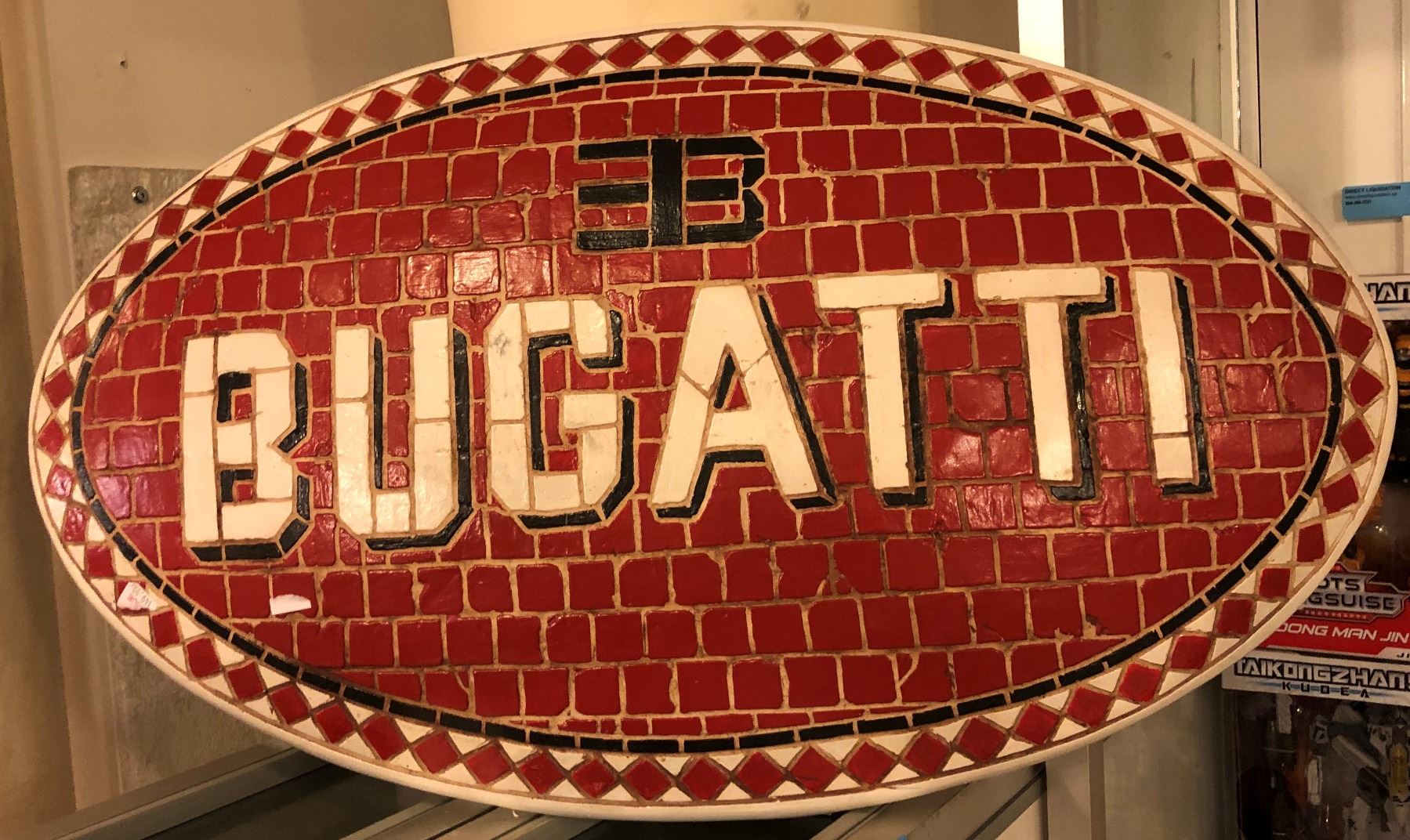 Faux ceramic mosaque Bugatti sports car wall art hanging - approx. 28in across x 17in wide