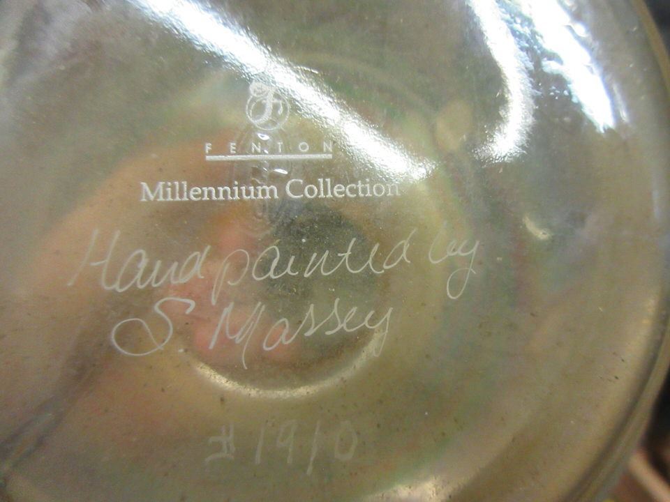7" tall x 9" diameter. Fenton, signed and numbered with sticker.