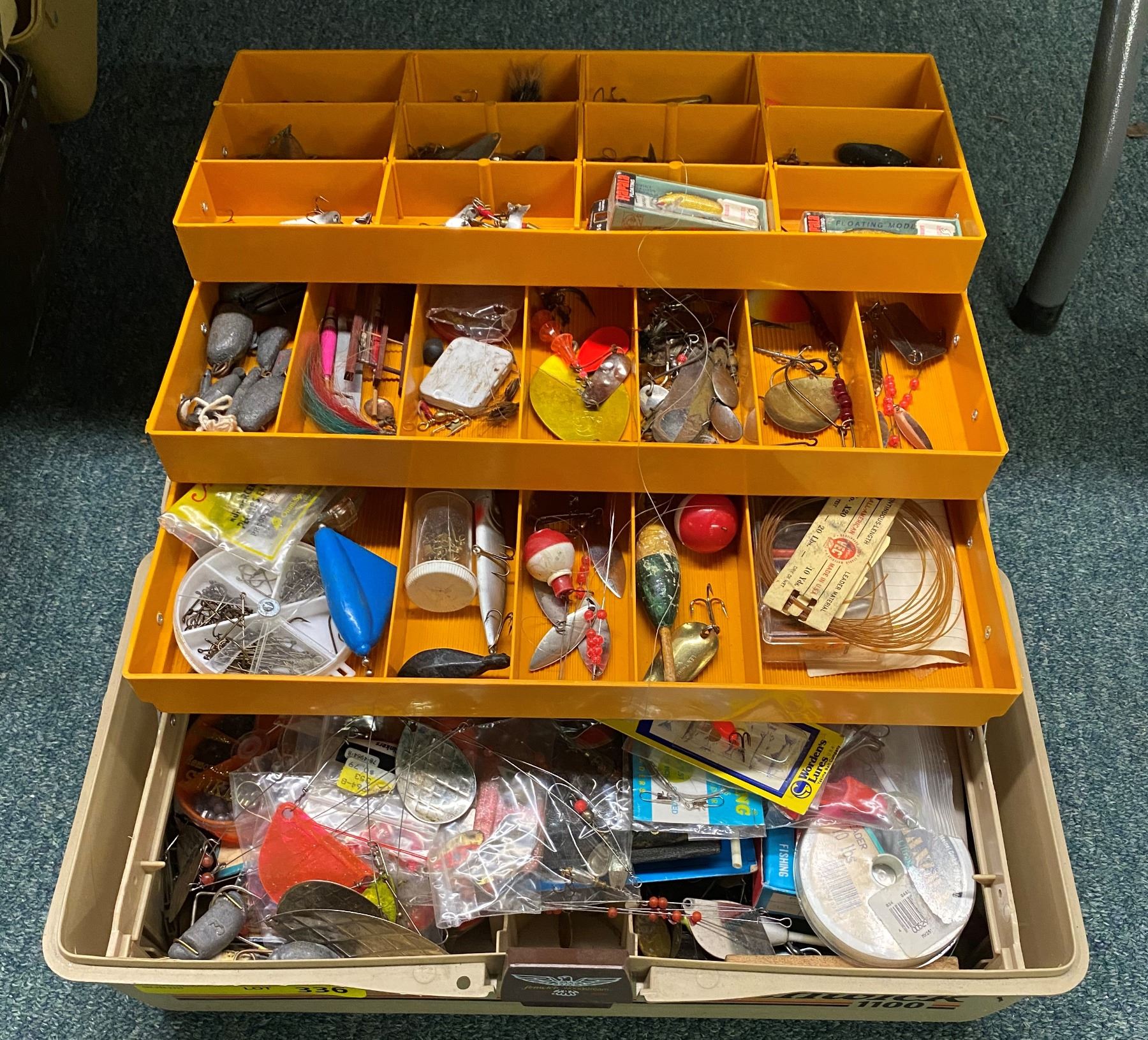 Fenwick 1100 tackle box & contents (mostly fresh water tackle)
