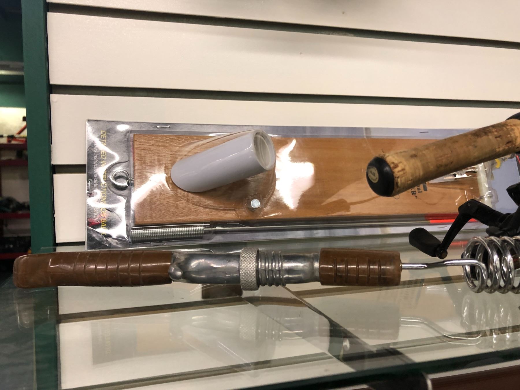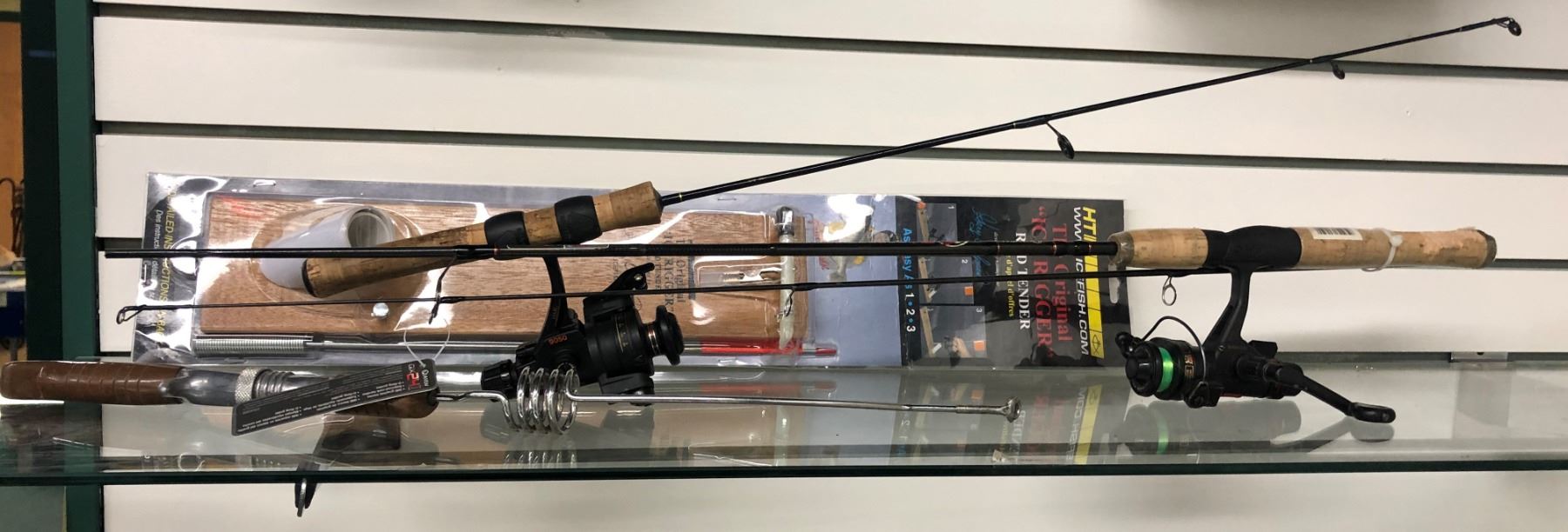 Fenwick ice fishing rod & reel combo/ quantum spinning rod w/ schimano reel/ small metal ice fishing rod & original ice rigor rod tender