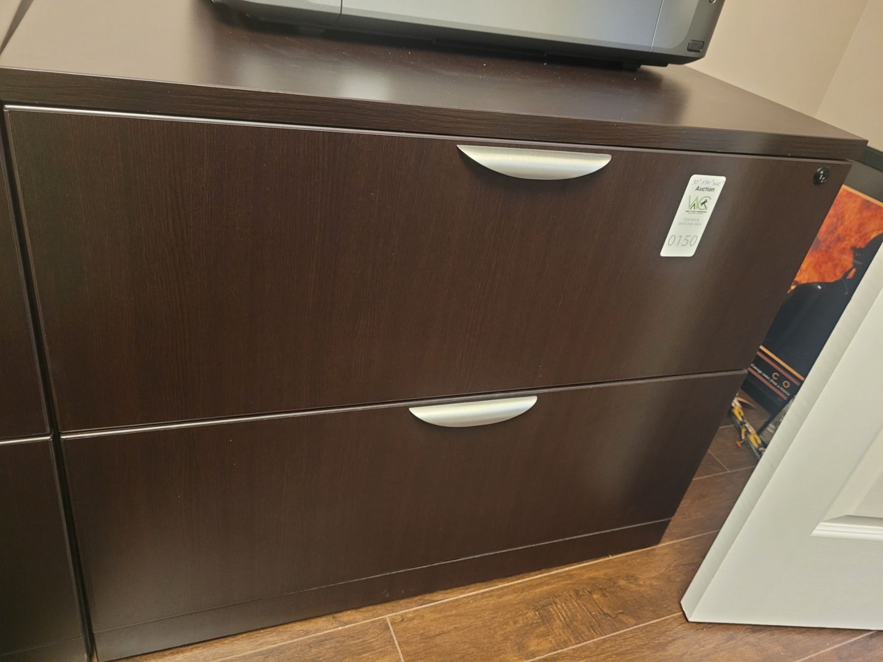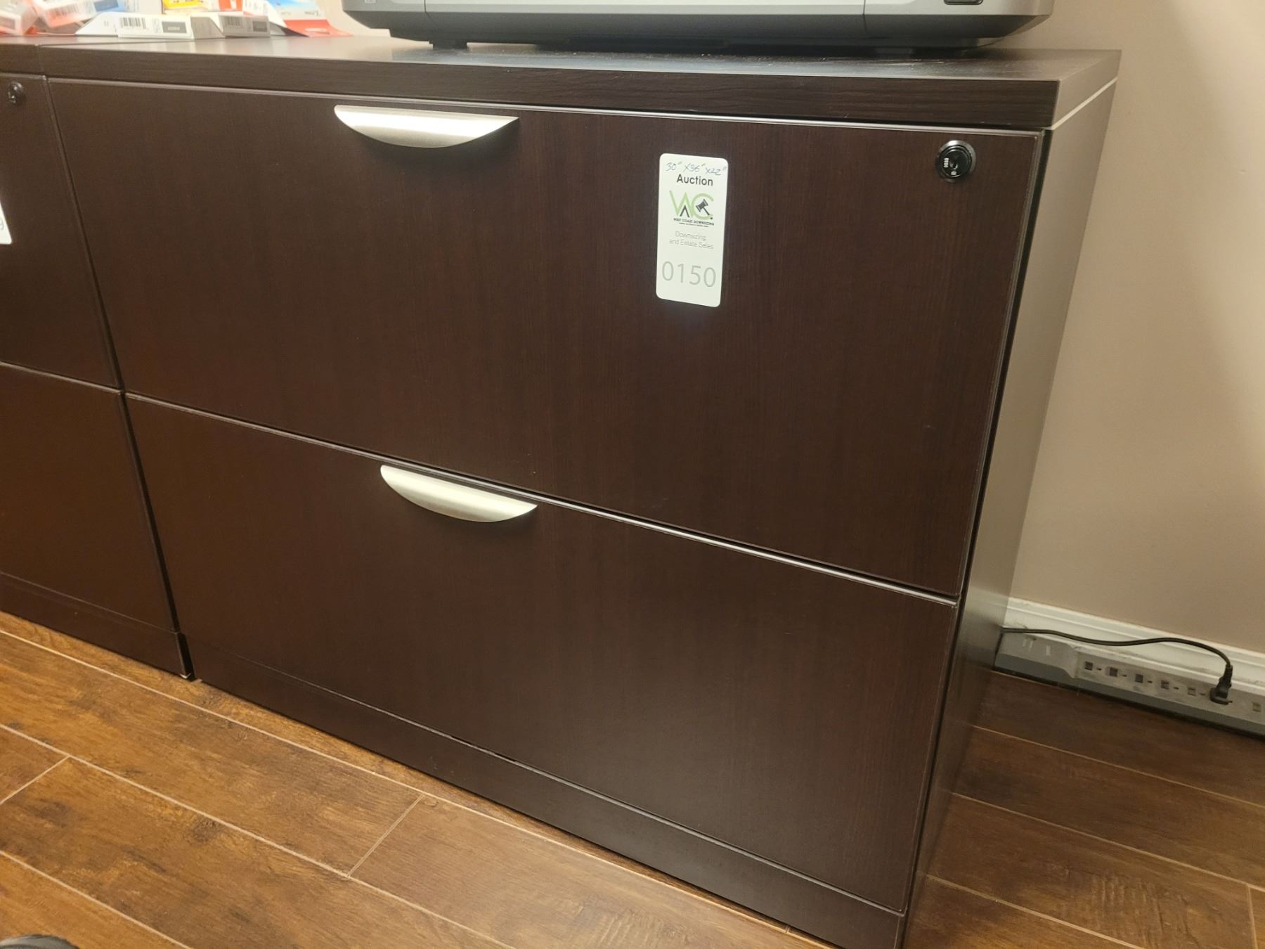 Two drawer filing cabinet, file folders included in top drawer, 30x36x22. Pick up 11-12