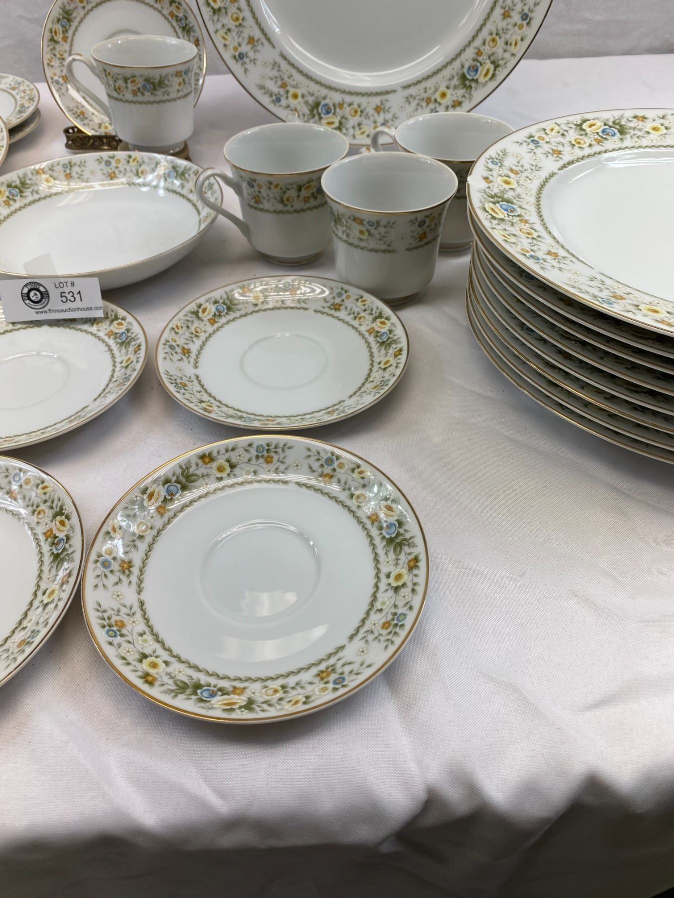 Fine China Japan Pricilla Plates, Cups And Saucers, 8 Plates, 2 Plates Have Chips