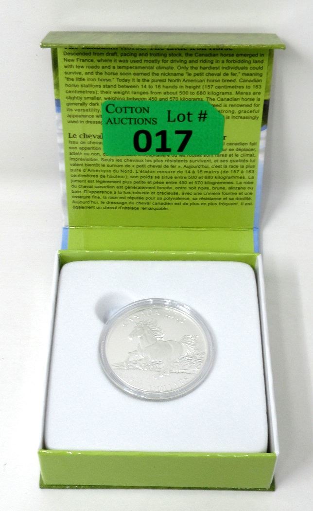 31.83 Grams of .9999 fine silver. Certified in box. Royal Canadian Mint. Tax exempt.