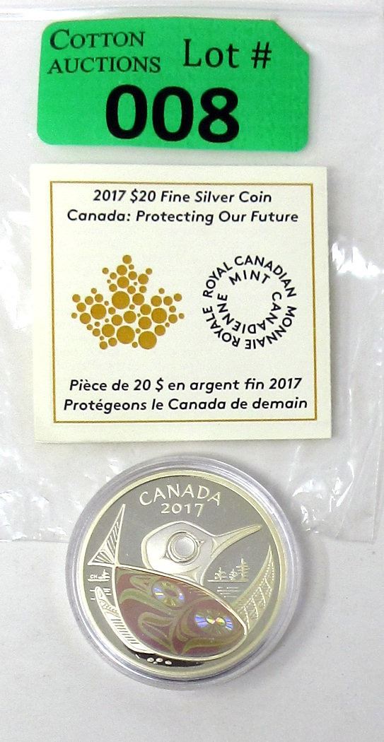 31.39 Grams of .9999 Fine Silver. Gold tone. Loon/salmon & canoe. Includes certificate. Royal Canadian Mint. Tax exempt.