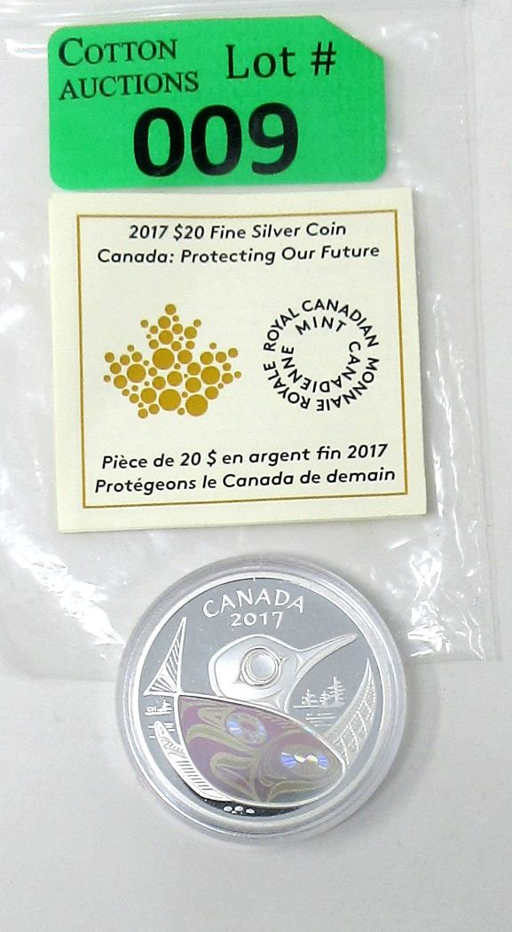 31.39 Grams of .9999 Fine Silver. Gold tone. Loon/salmon & canoe. Includes certificate. Royal Canadian Mint. Tax exempt.
