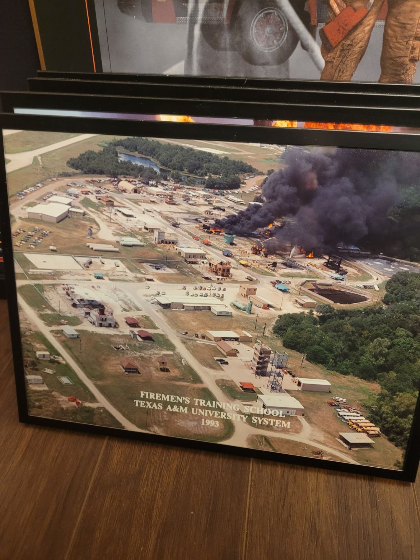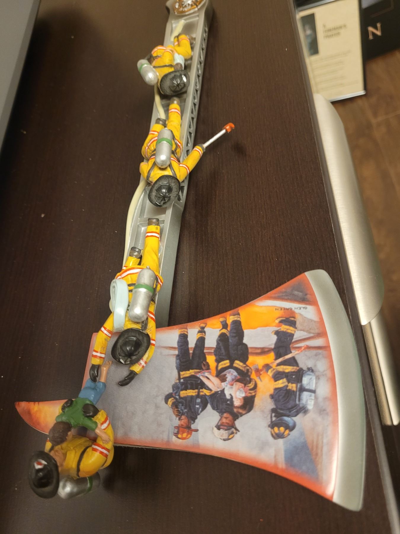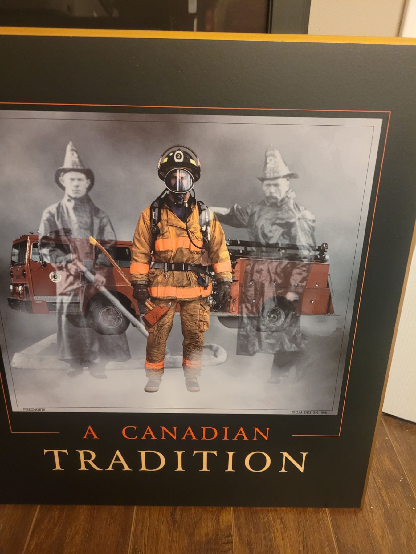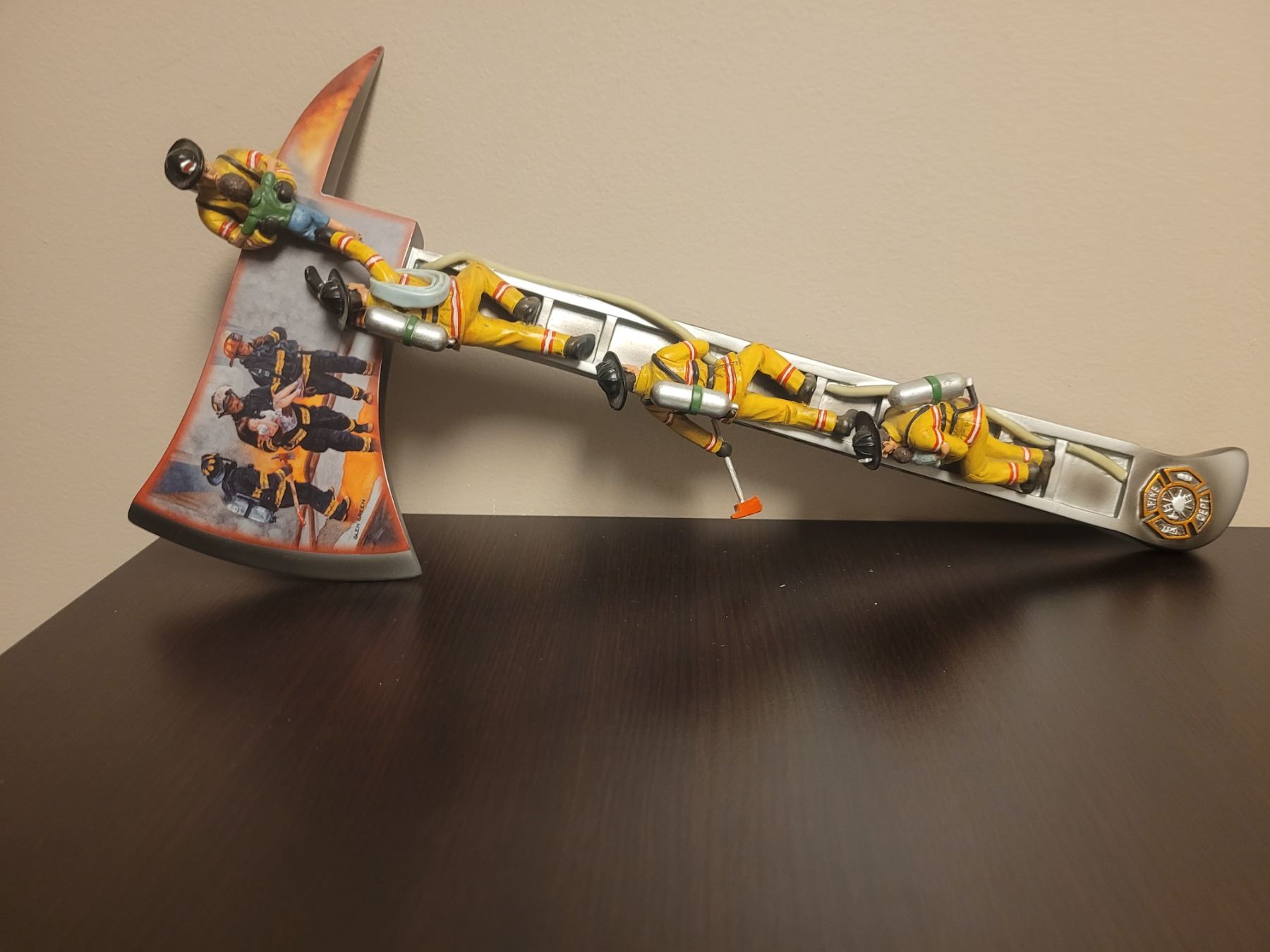 Framed Art, hatchet, fire extinguisher, pick up 9-10