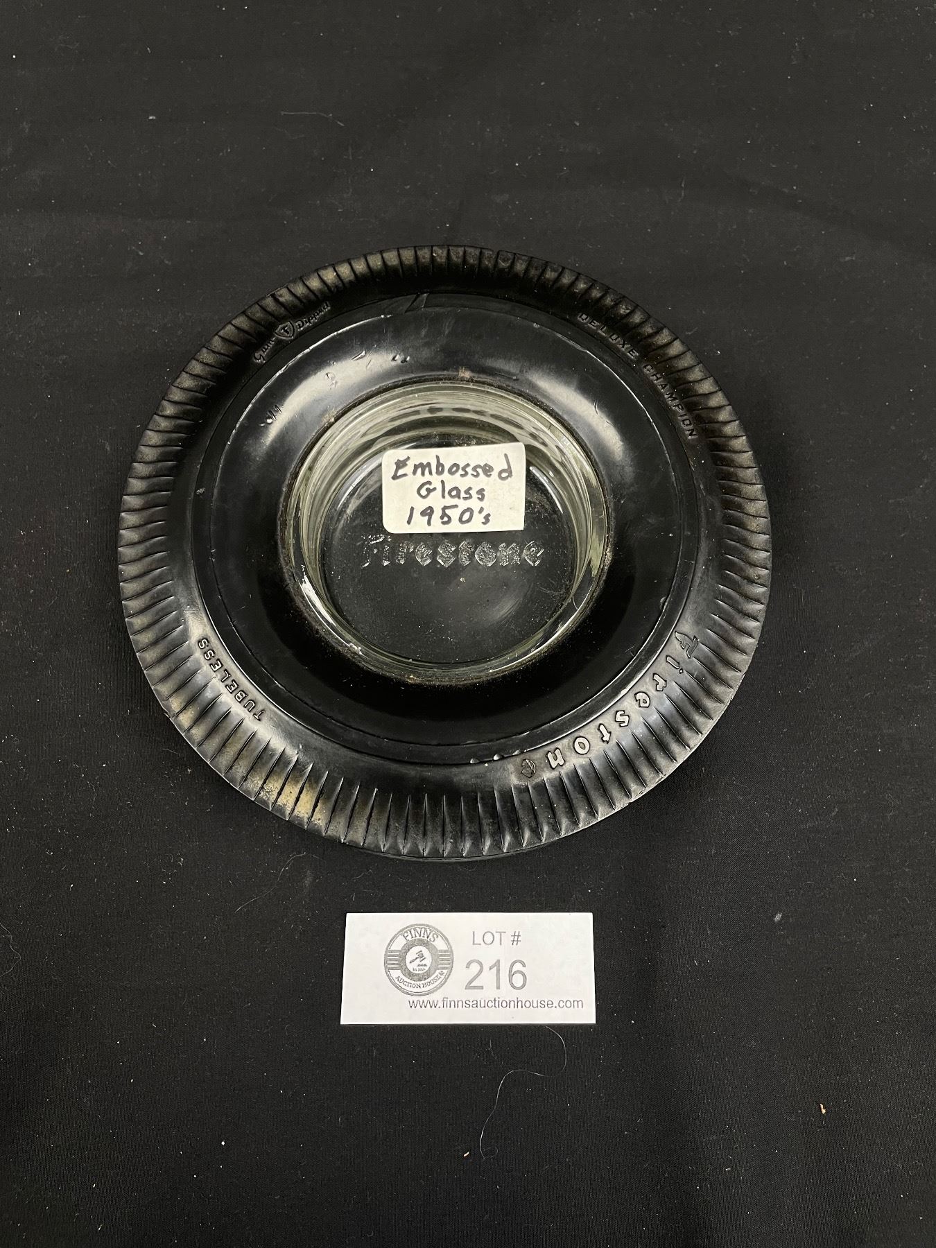 Firestone Tire Ashtray Deluxe Champion Embossed Glass 1950s