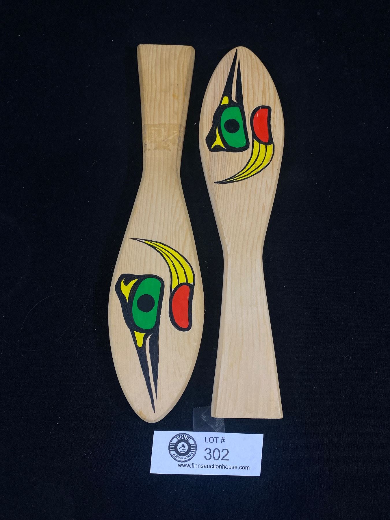 First Nations Small Wooden Painted Paddle Pair