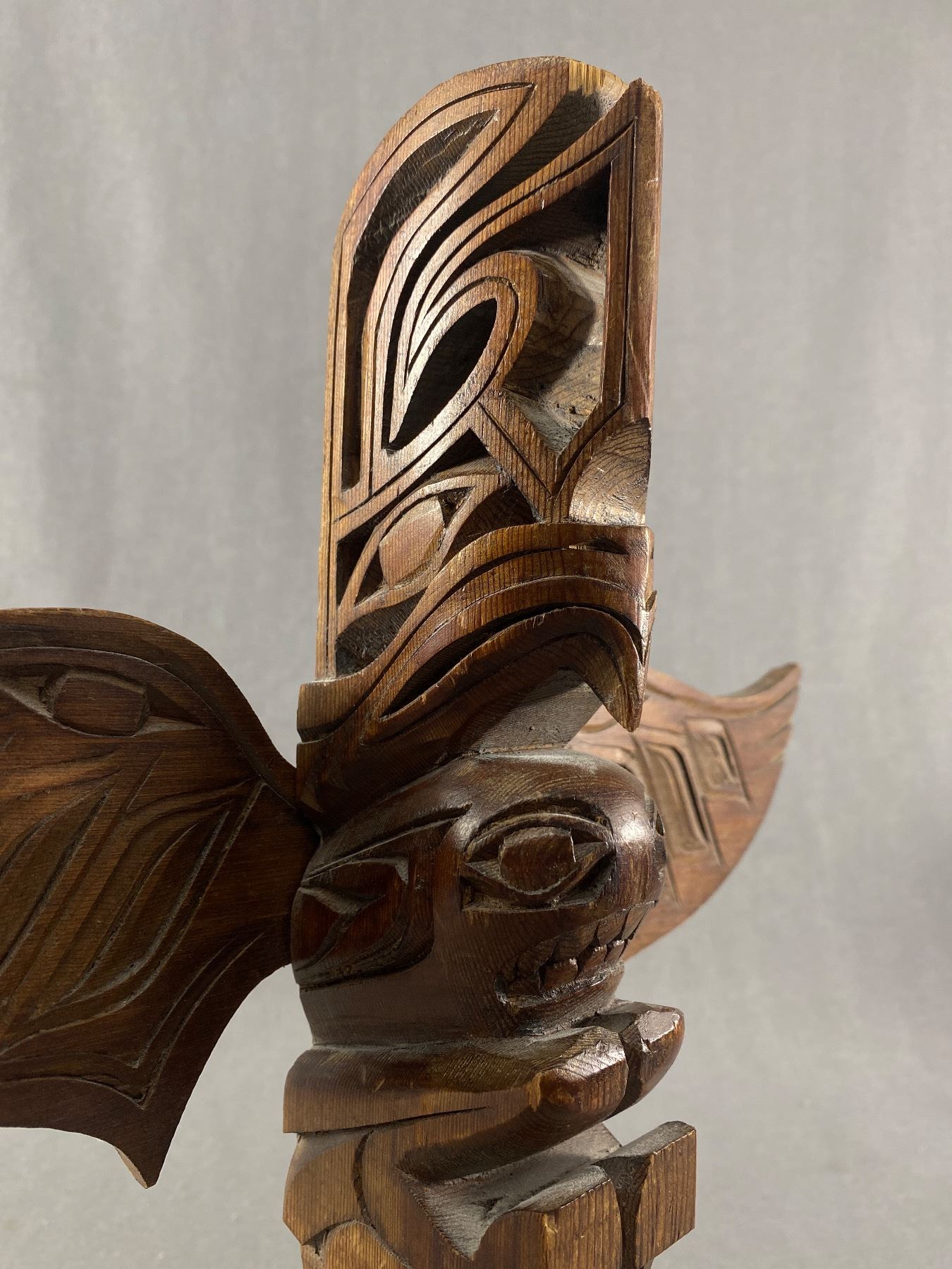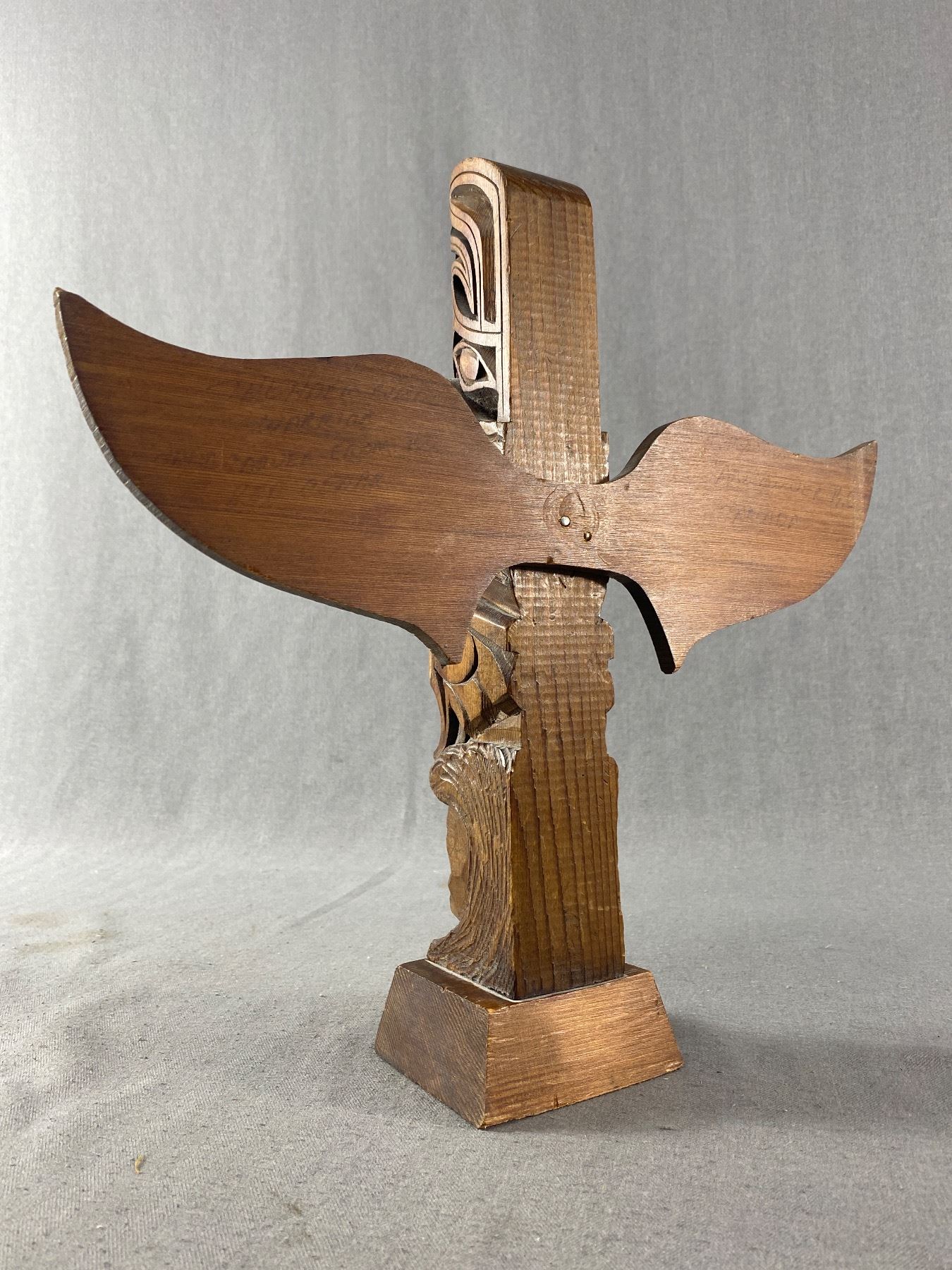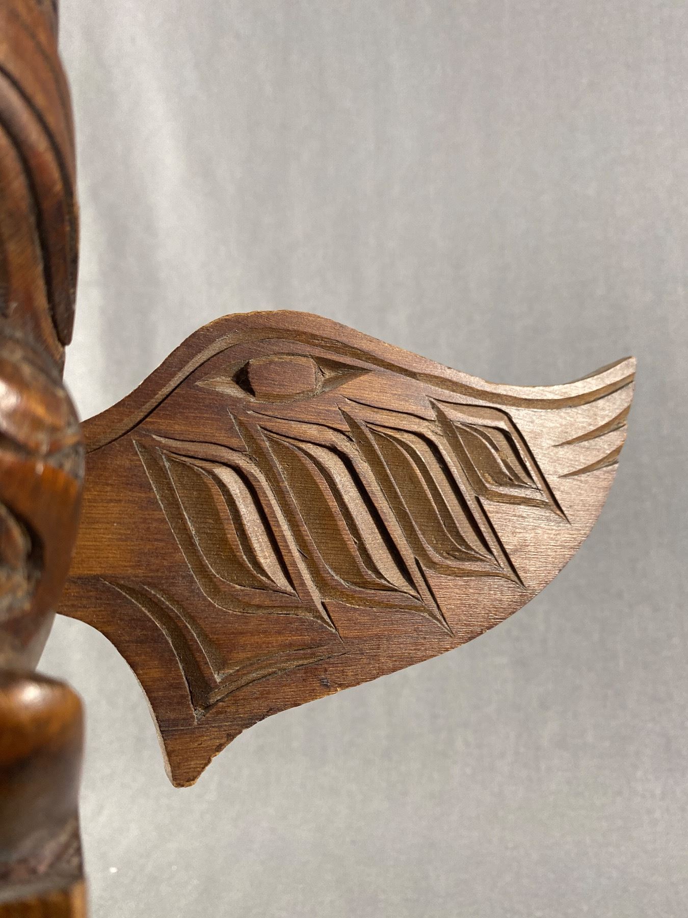 First Nations Wood Carved "Thunderbird Warrior" Vancouver BC Signed Approx 13 1/2"