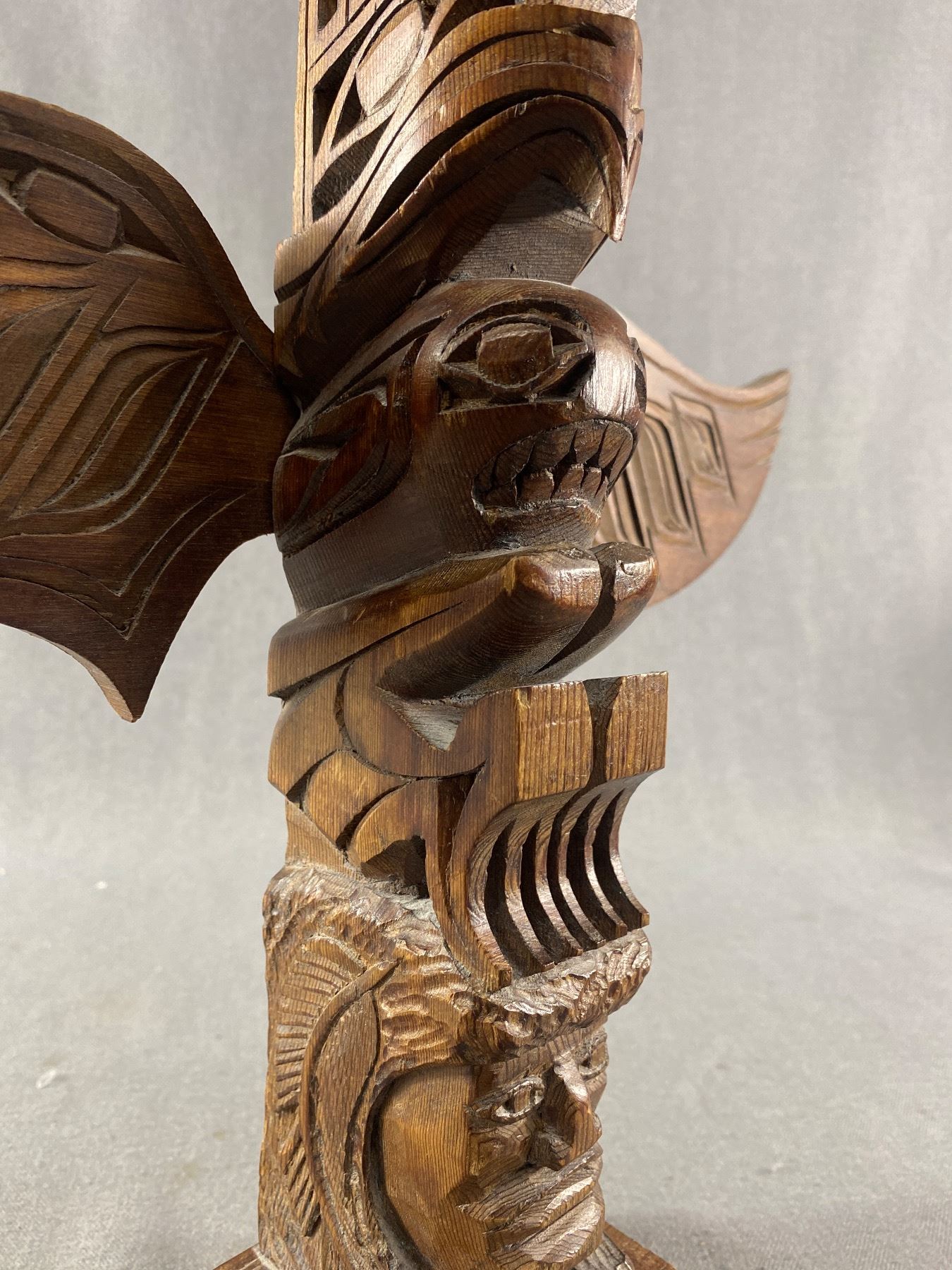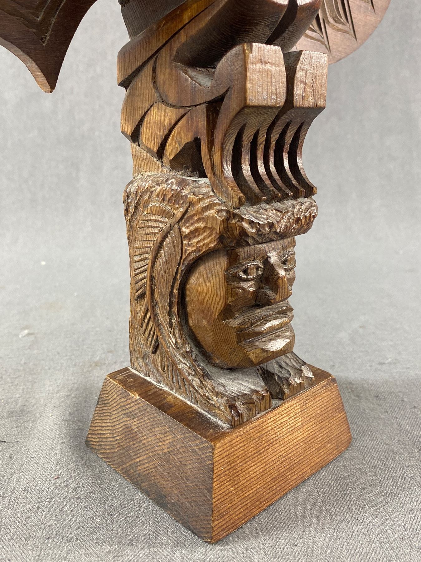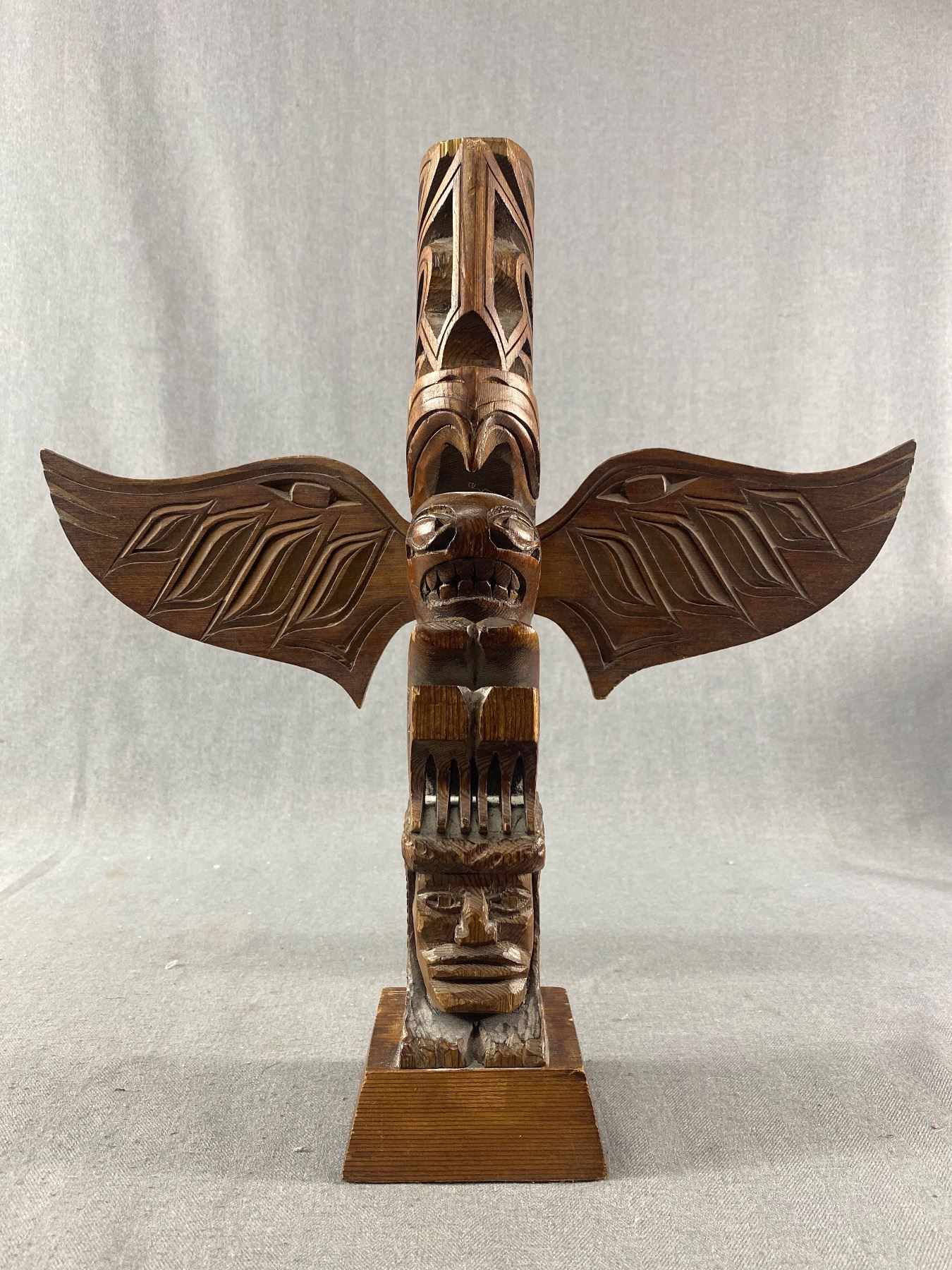 First Nations Wood Carved "Thunderbird Warrior" Vancouver BC Signed Approx 13 1/2"