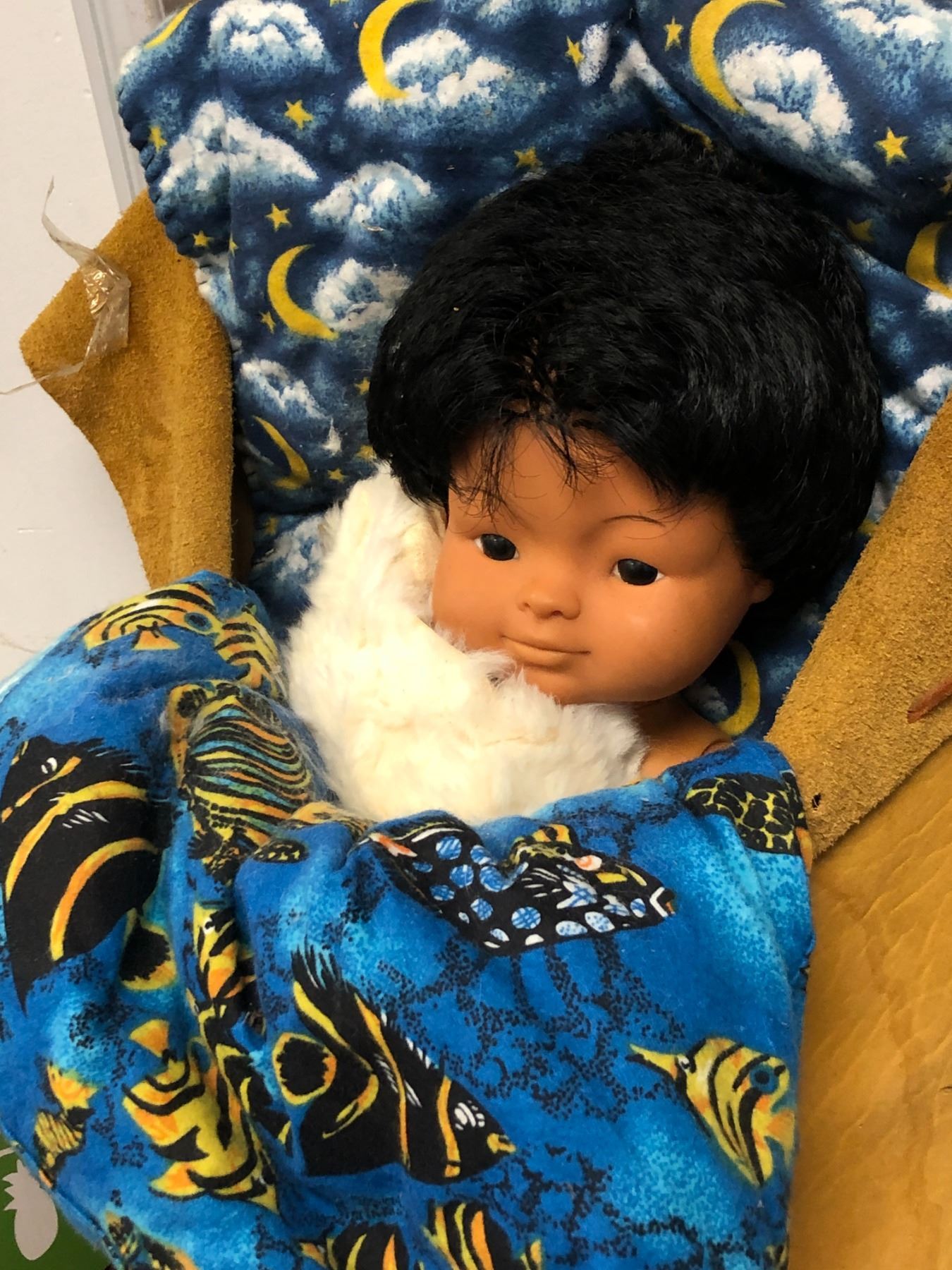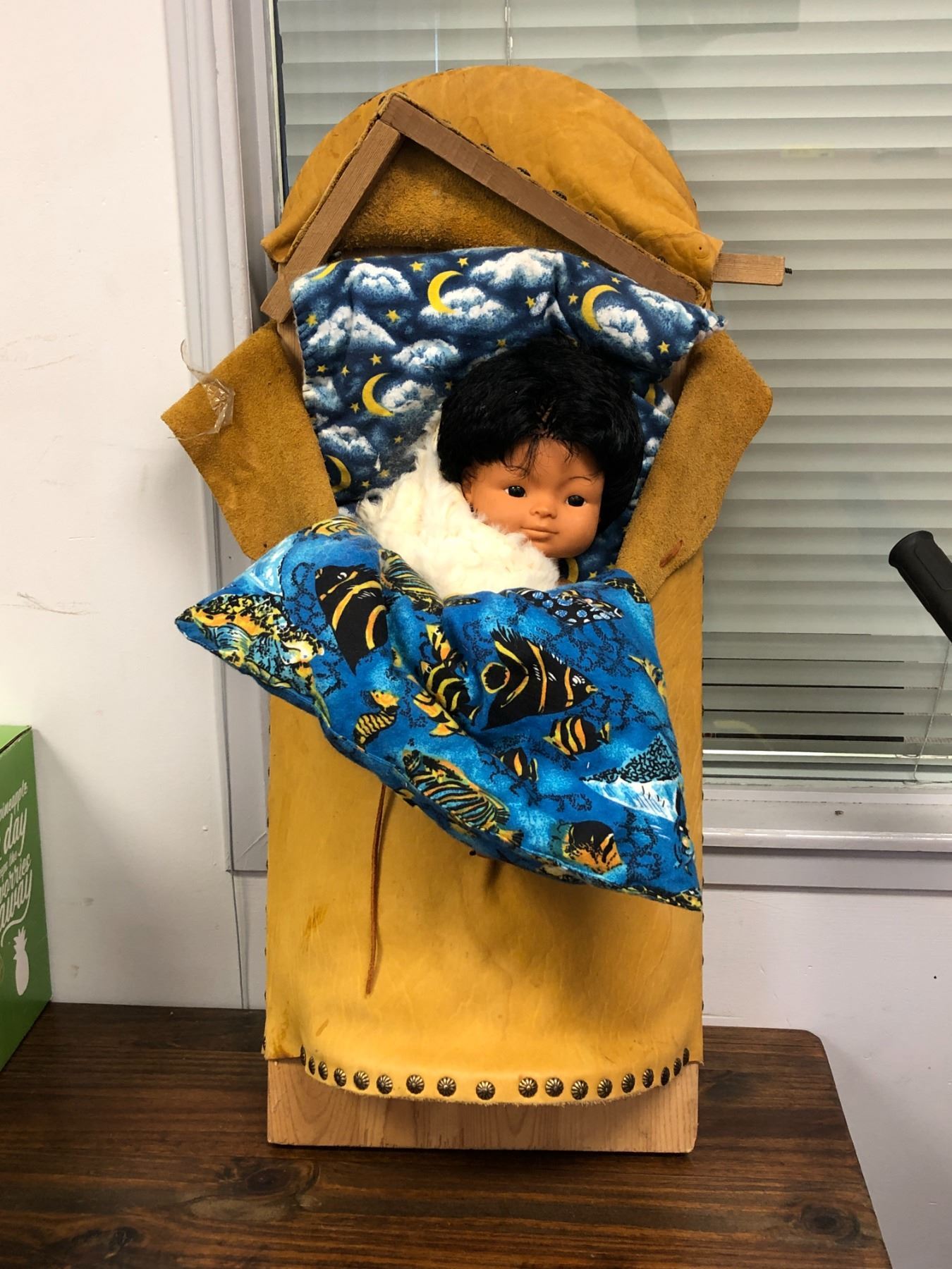 First Nations sleeping in cradle baby doll wall hanging - approx 32" long
