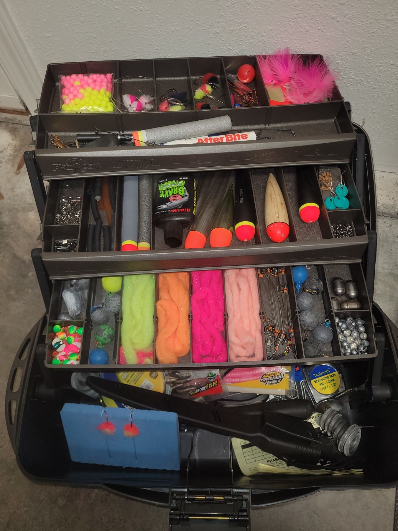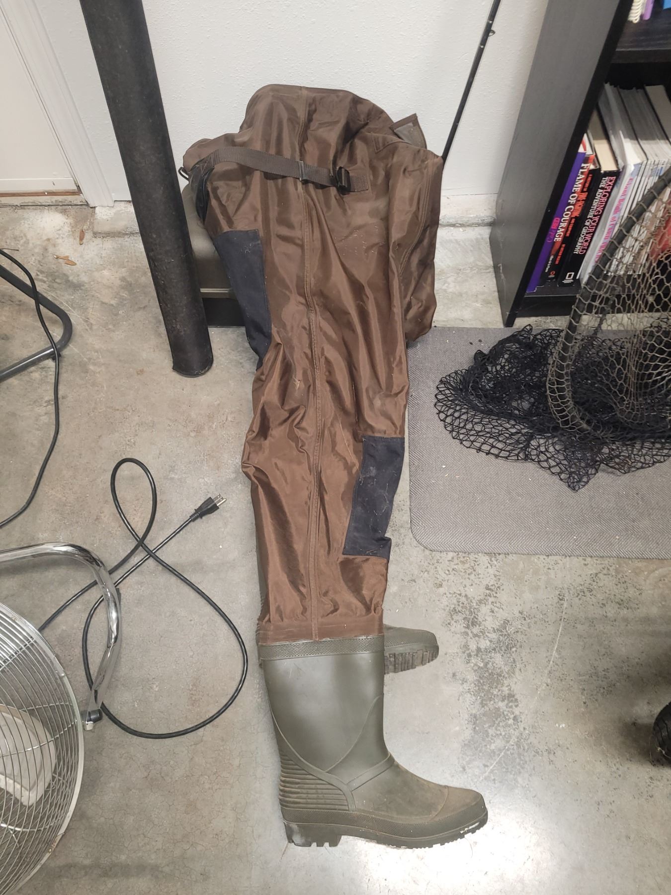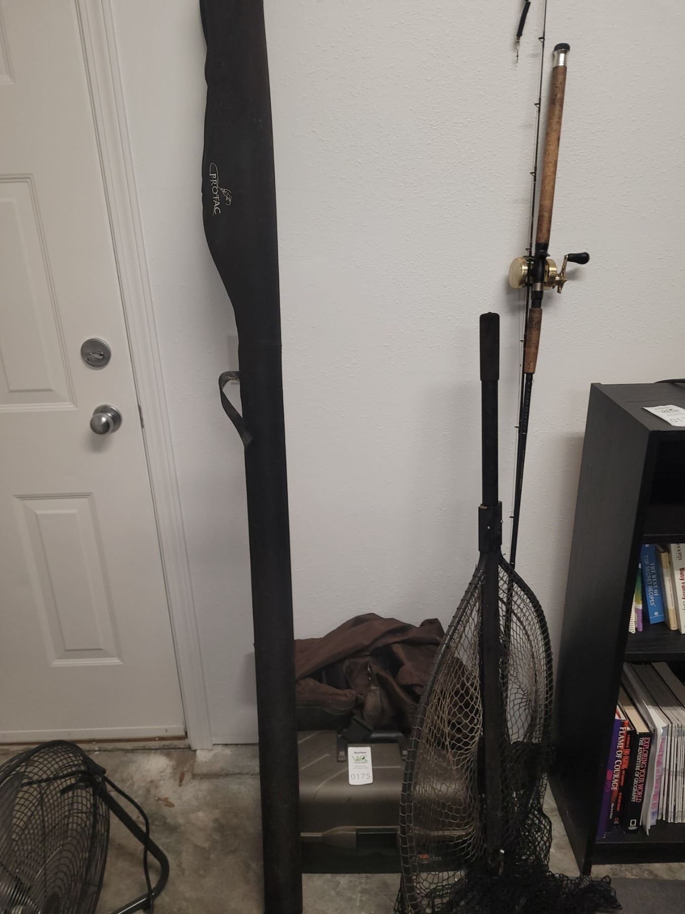 TeamDaiwal reel, rod, Protac carry case for fishing rod. Net, tackle box, waders,size 10. Pickup at 10 am
