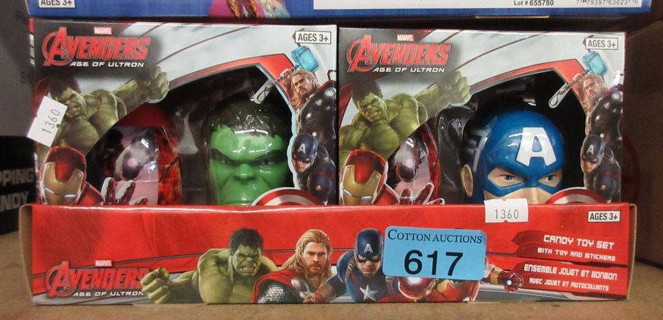 Each set contains a plastic egg full of candy and stickers - plus an Avengers hero head model.