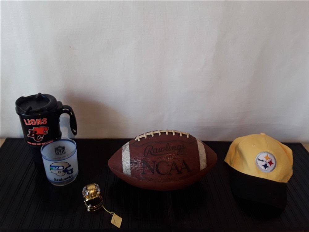 Football, Travel Mug, Hat + More, Most Items have not been tested - 17% Buyer Fee. Payment Processed through Live Auction World ( Visa or Master Card ) pick up Saturday, or Tuesday
