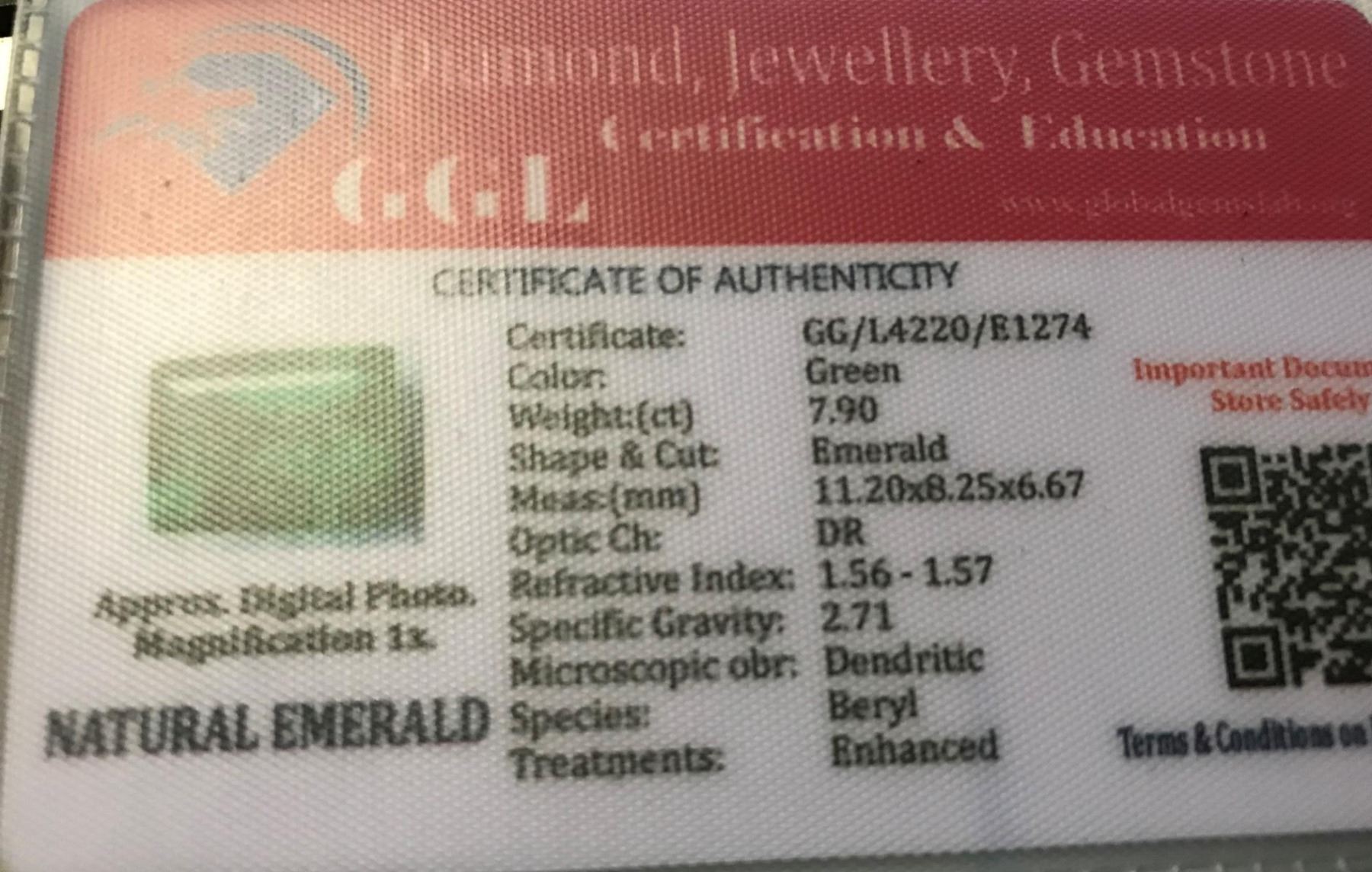 Country of Origin:Zambia;Gemstone:Emerald;:Color:Forest Green;Length:11.20x8.25 MM MM;Treatment:Yes....Enhanced; Total Carat Weight (TCW):7.90 Ct