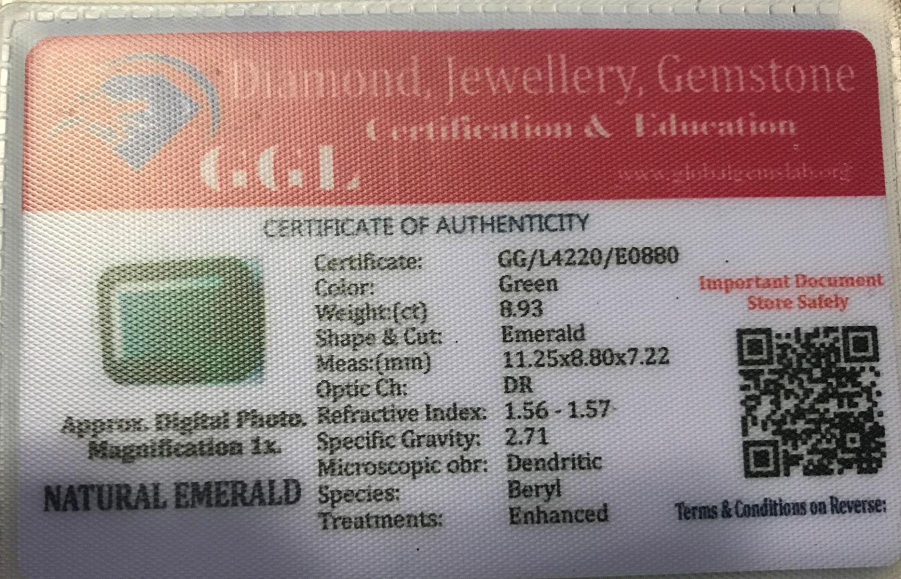 Forest Green Zambian Emerald 8.93 Cts - Certified ....size 11.25x8.80x7.22 MM; Origin - Zambia; Treatment - Yes, Enhanced
