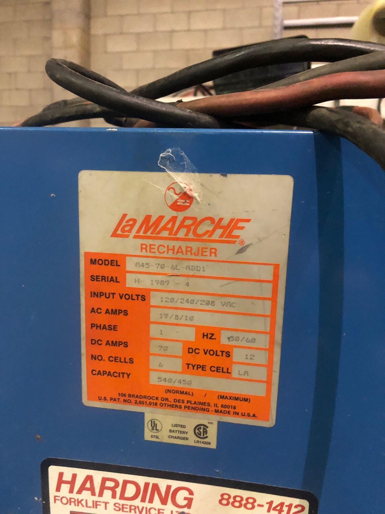 Forklift charger model A45-70-6L-ABD1 - clean up auction moving auction
