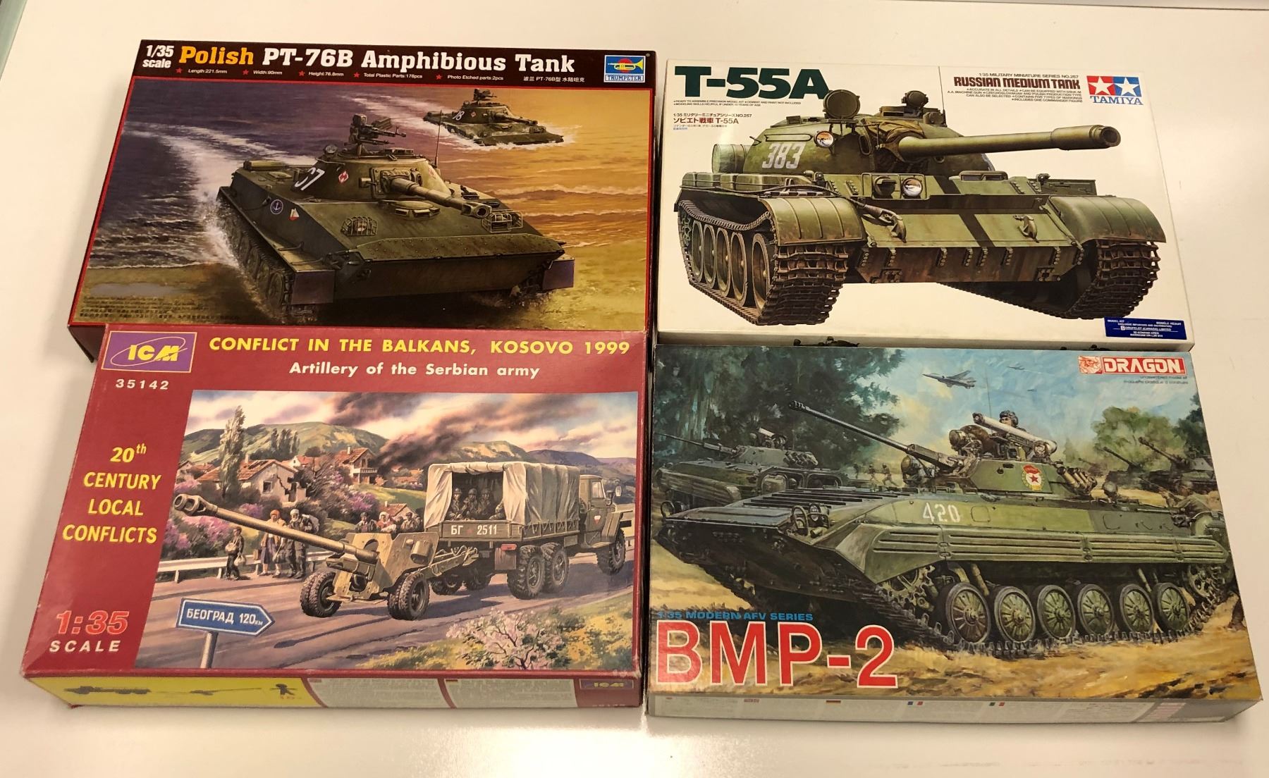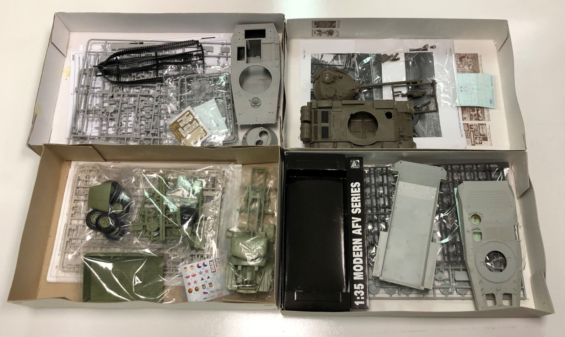 Four 1/35th Scale Started Military Model Tank Armour Kits - 1 Tamiya/ 1 Trumpeter/ 1 Dragon/ 1 ICM (all Russian)