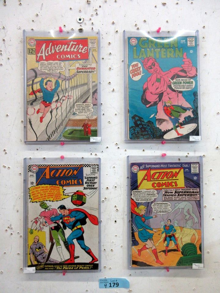 1968 Green Lantern #68, 1962 Adventure #299, and two 1966 Action Comics # 332 & #333. Each is in an individual acid proof sleeve.