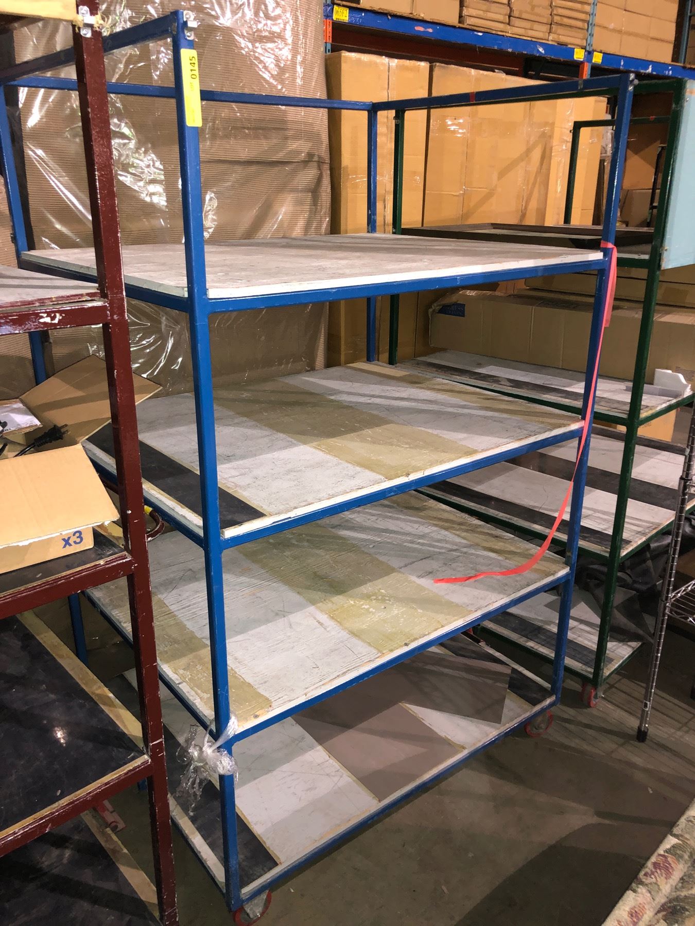 Four tier industrial rolling display shelf (Approximately 4ft Wide x 37ft depth x 74in height)