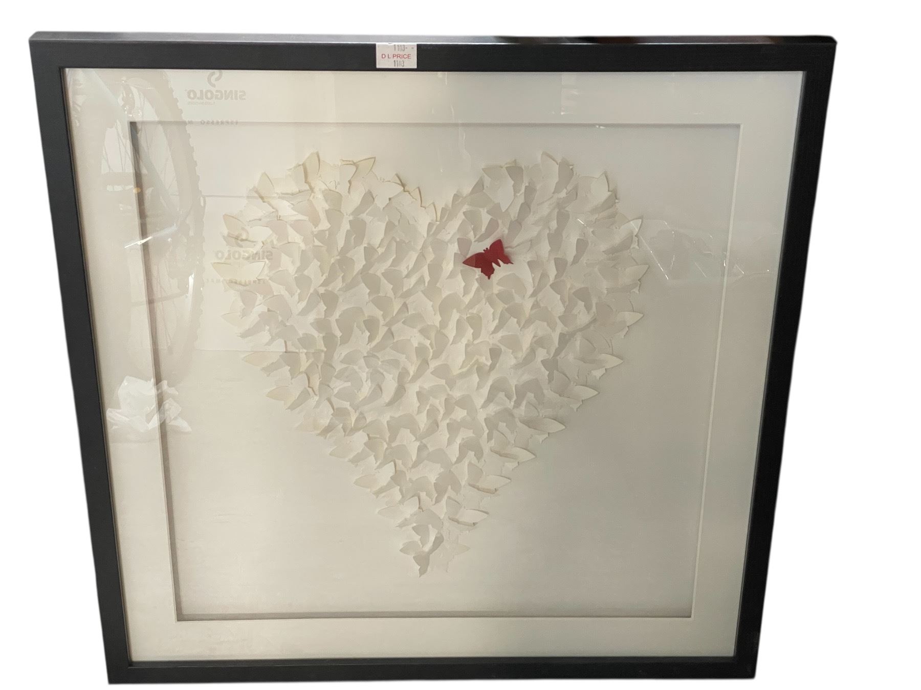 Framed 3D Butterfly Shadow Box Artwork – White Swarm with Red Accent