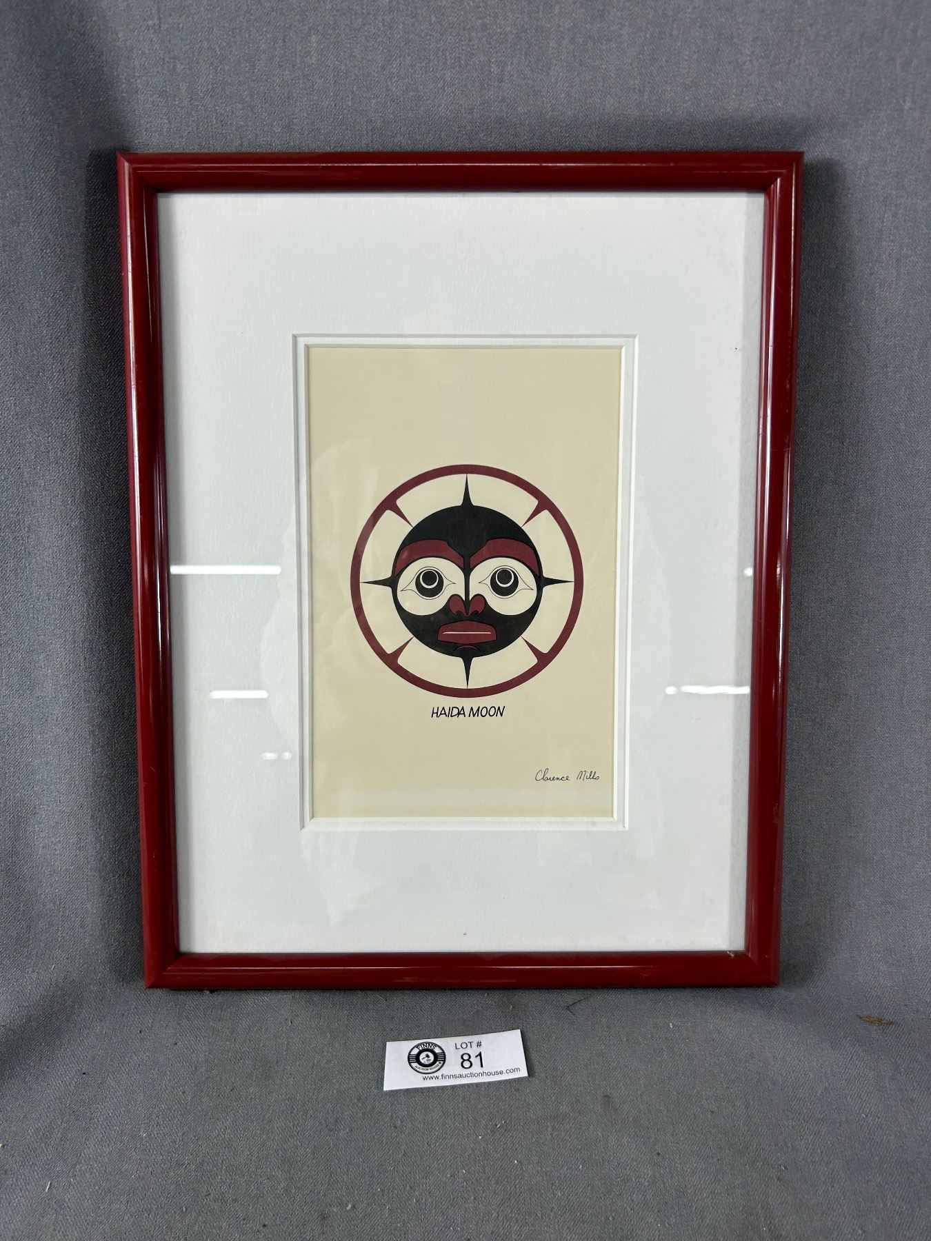 Framed Aboriginal "Haida Moon" Print By Clarence Mills. Approx. 15" x 11 1/2"
