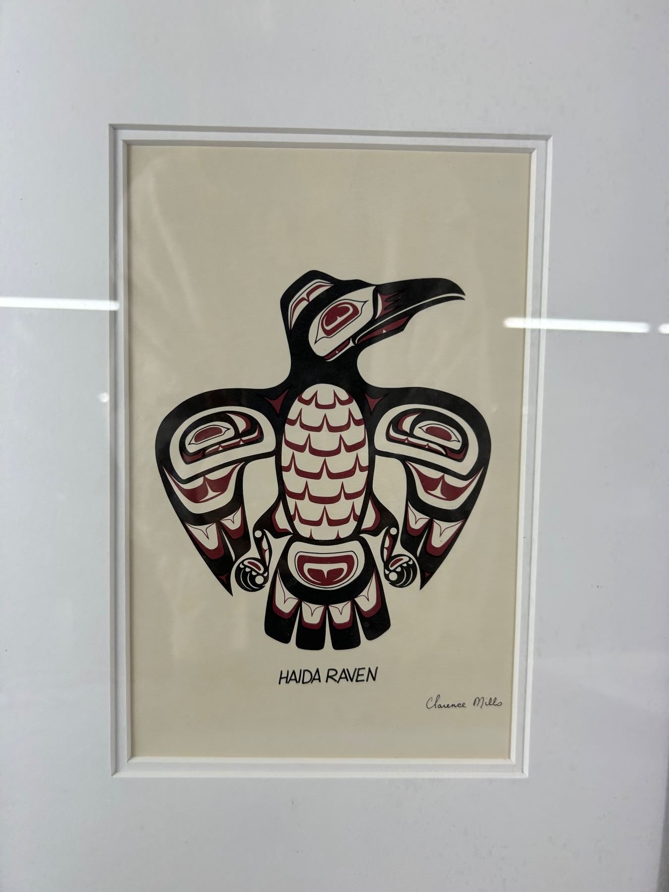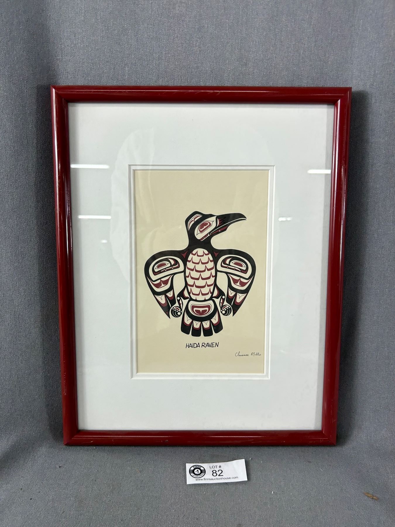 Framed Aboriginal "Haida Raven" Print By Clarence Mills. Approx. 15" x 11 1/2"