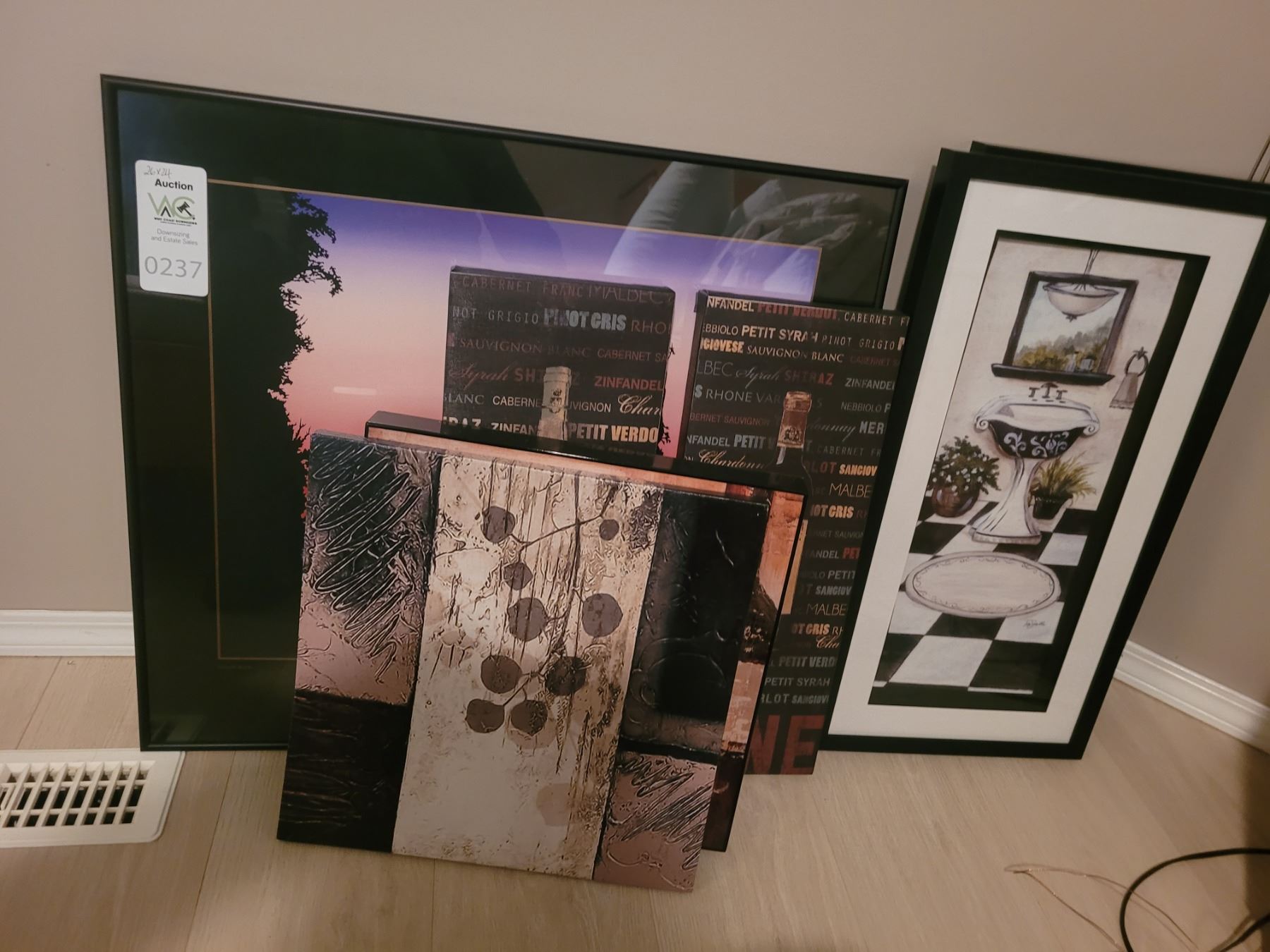 Various art prints, largest 26x24. Pick up 9-10