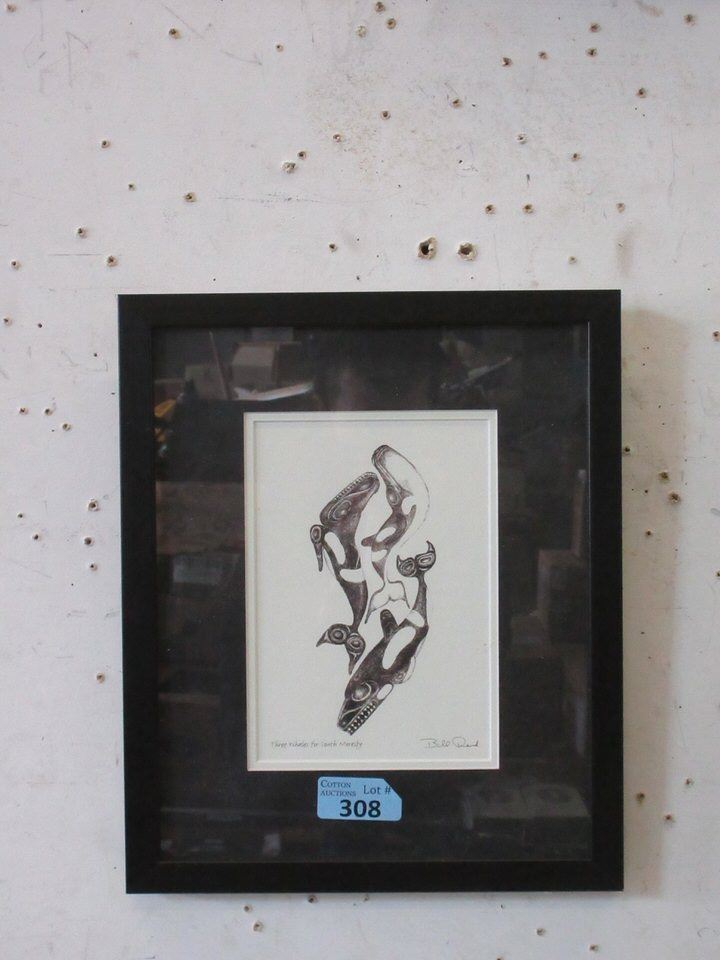 "3 Whales for South Moresby". Double matted. 12" x 14" framed.