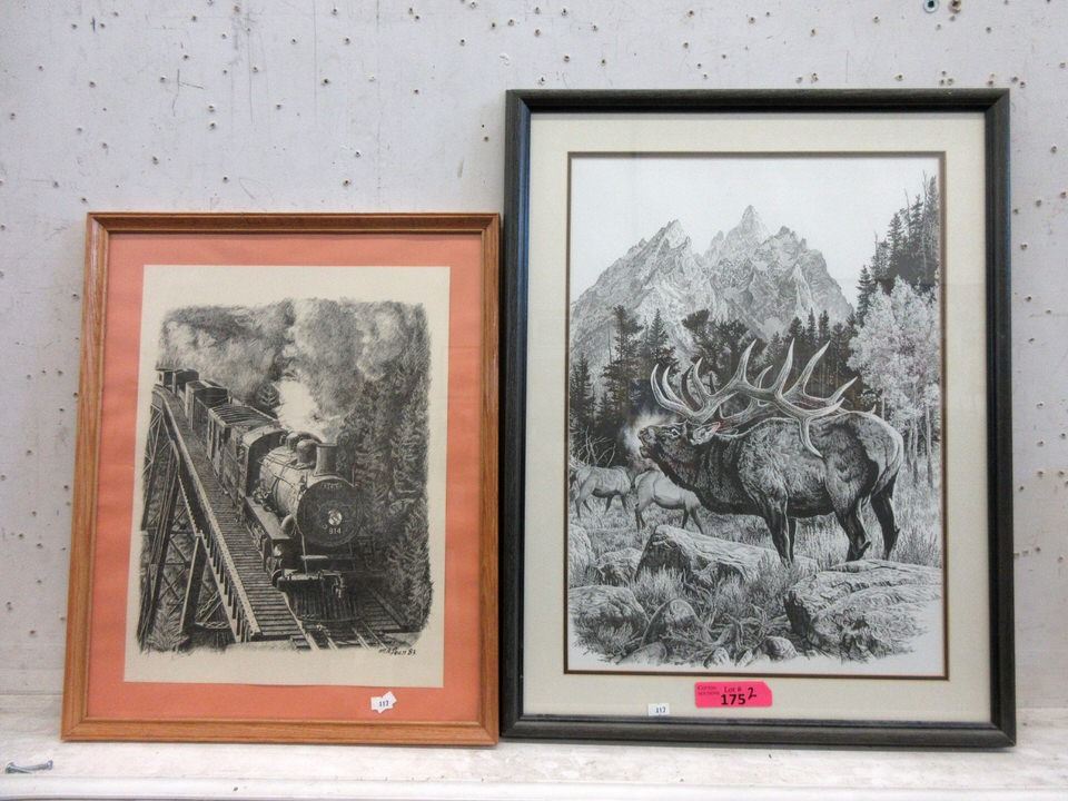 Bill Neill Cariboo is 26" x 20" framed. M. A. Dean - Locomotive 914 is 17" x 21" framed.