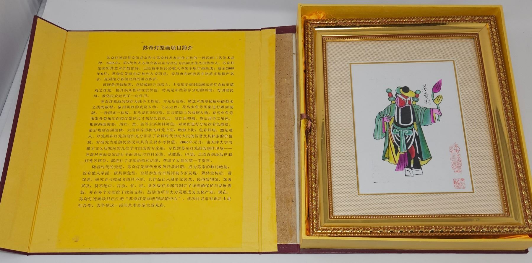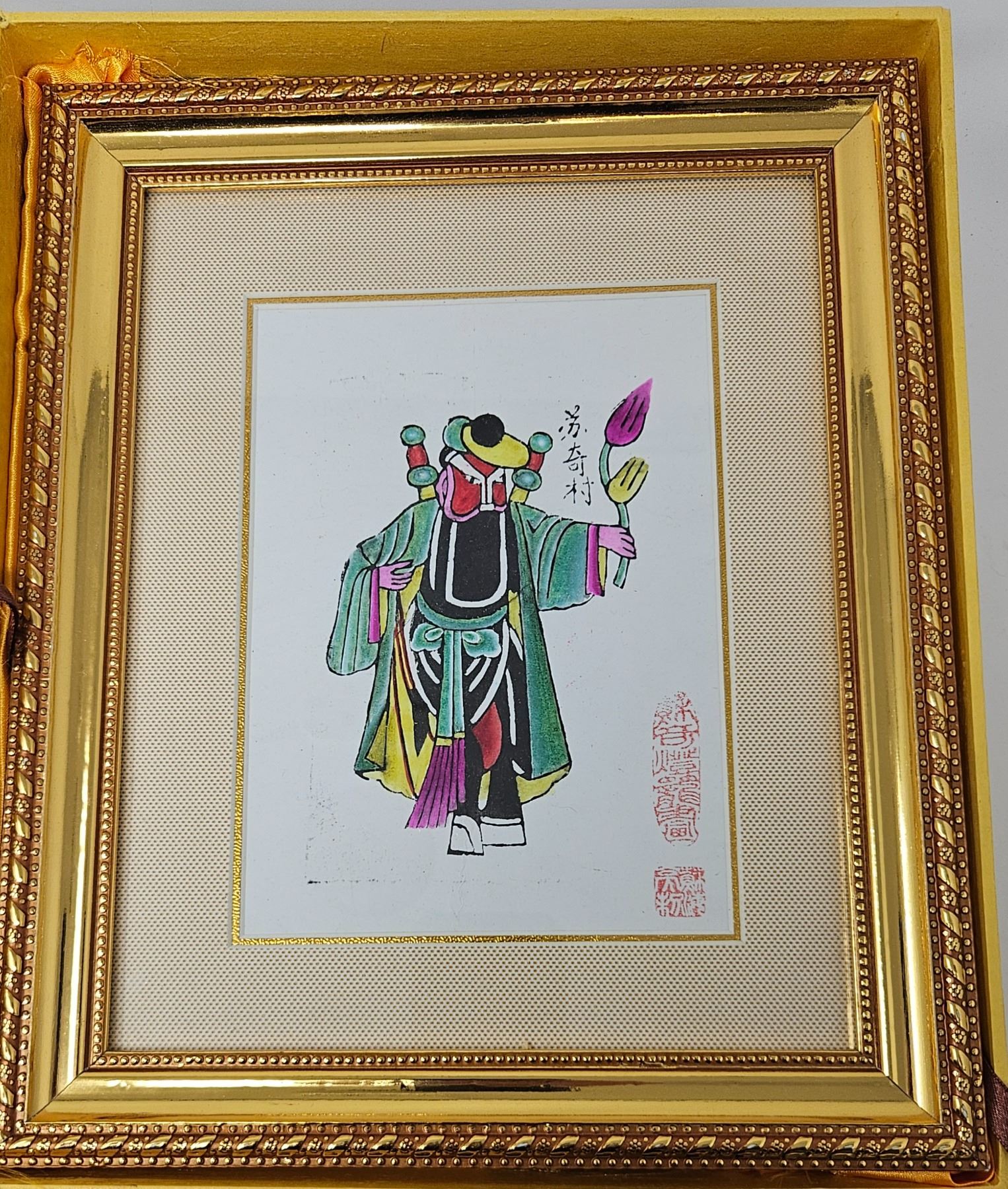 Colorful print of a traditional Lantern Festival figure in ornate gold frame. A vivid cultural piece with folk-art style—perfect for collectors or decor.