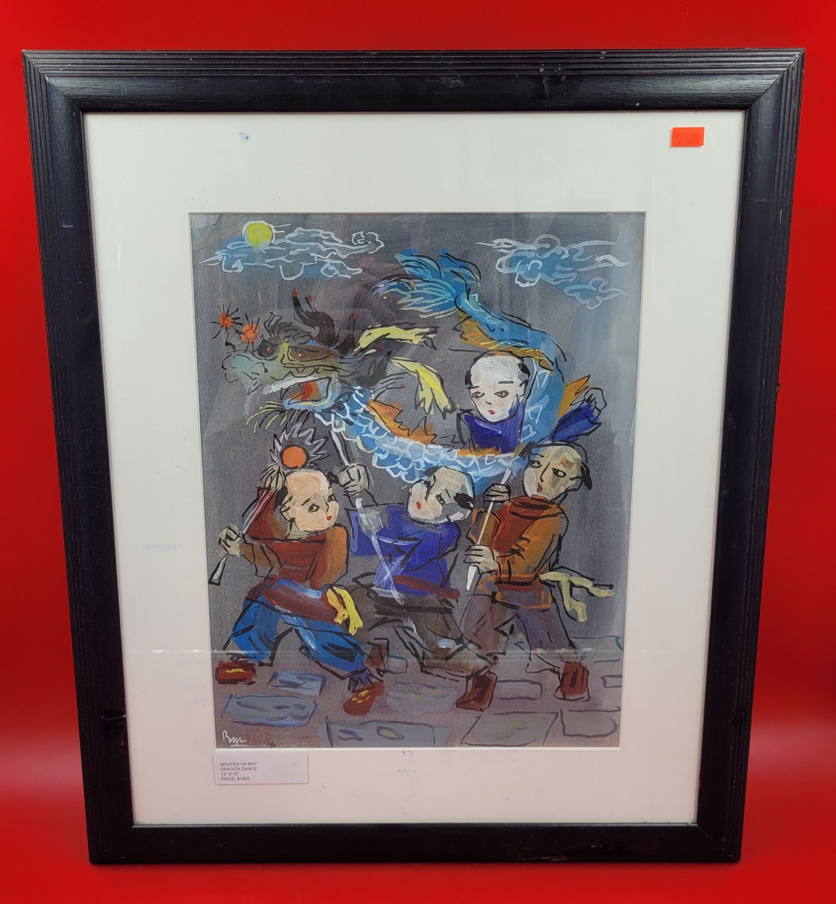 Framed "Dragon Dance" Painting by Nguyen Ha Bac
