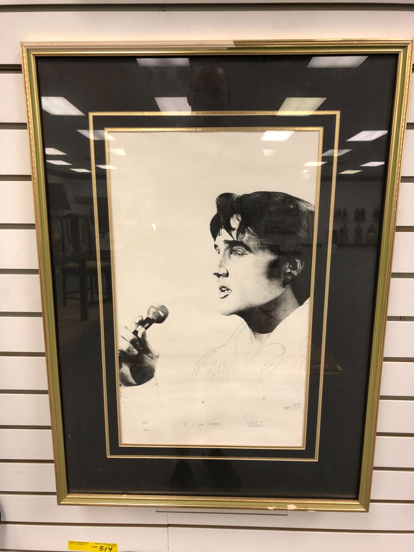 Framed Elvis Presley limited edition print "If I Can Dream" by artist Mario Crudo #43/500 - approx. 21in x 29in