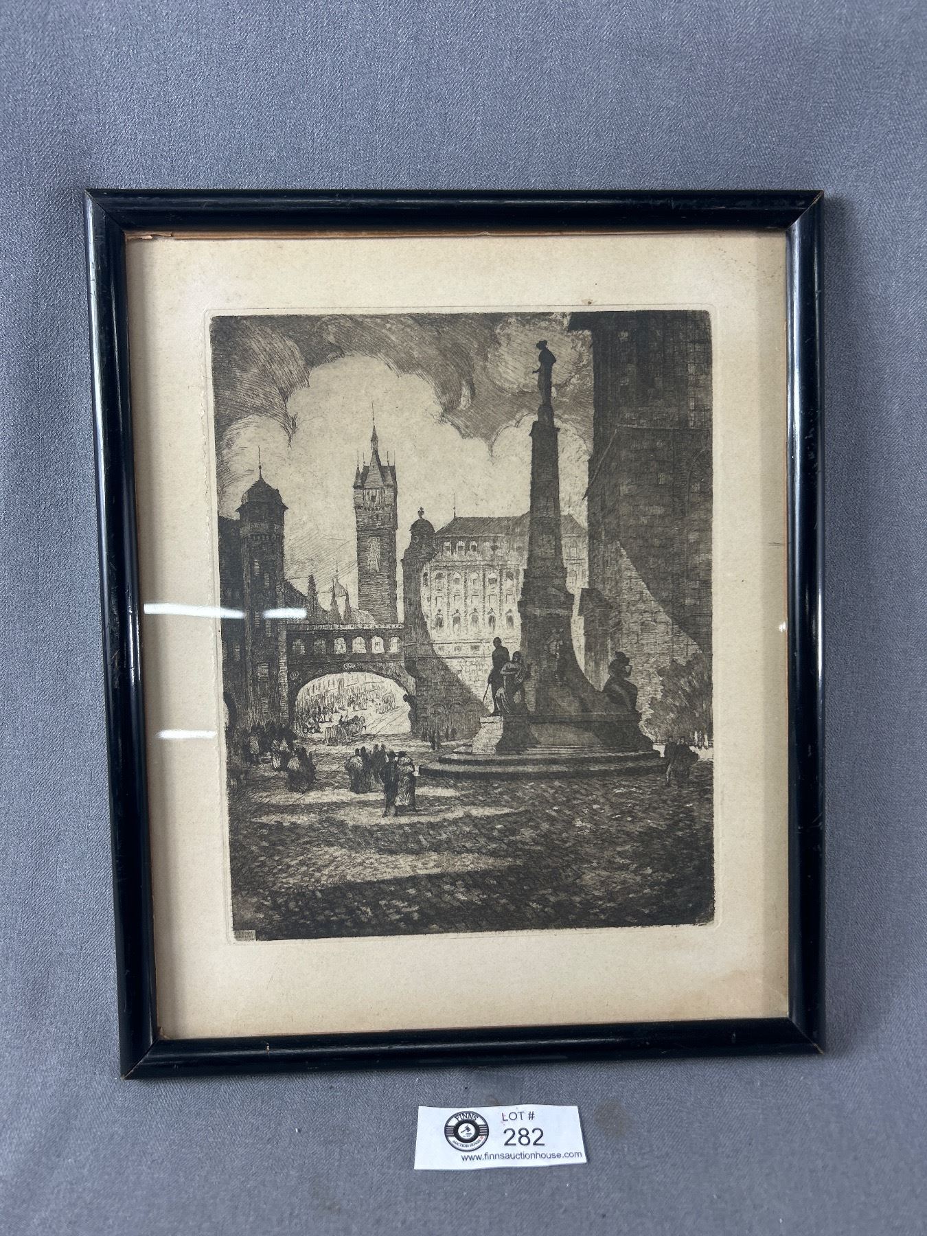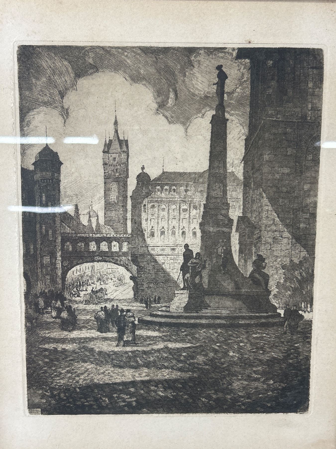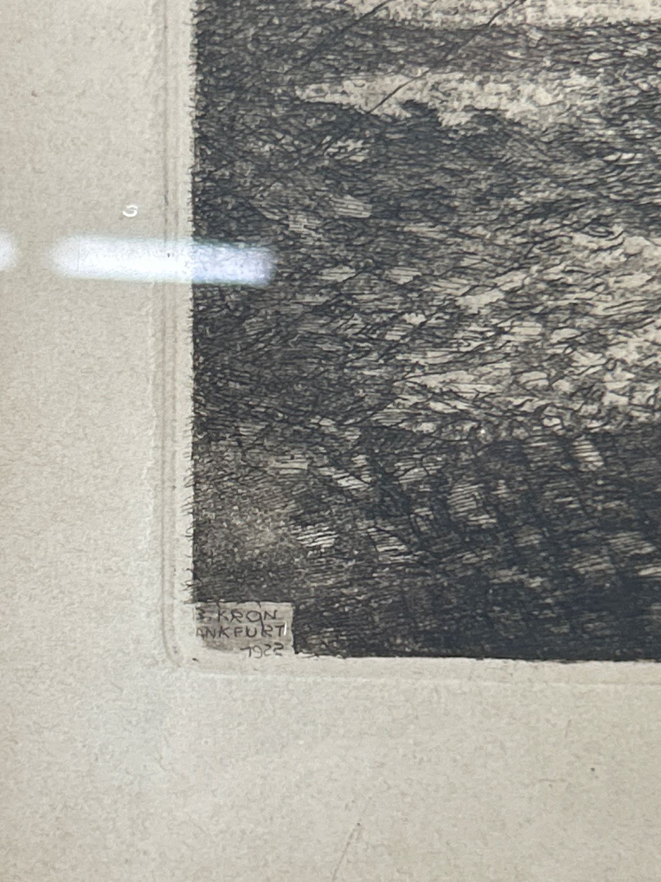 Framed Etching 1920's by Bela Kron Wll Listed Artist
