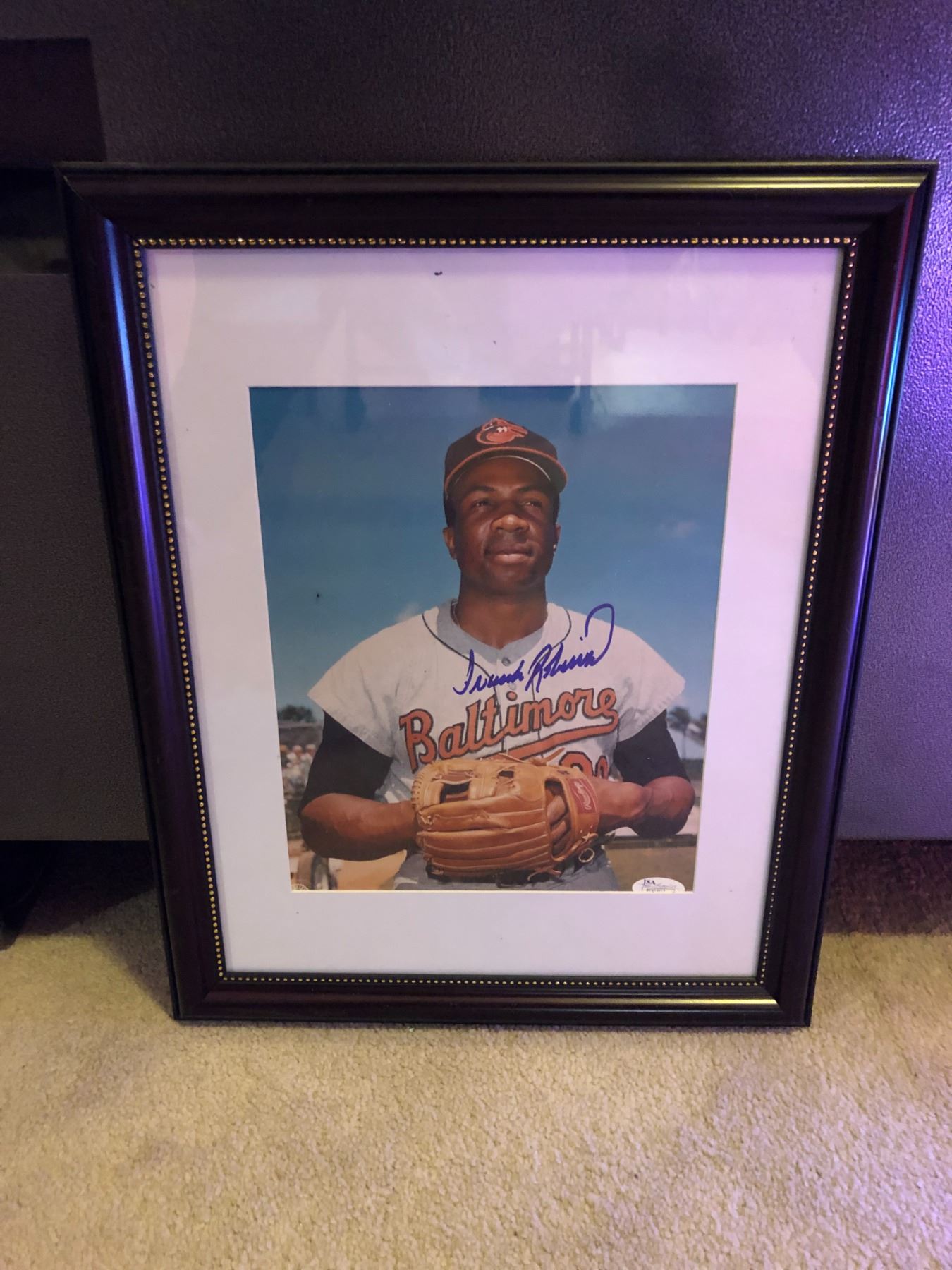 Framed Frank Robinson signed print certified by West Coast Authentics - approx. 15 1/2in x 12 1/2in