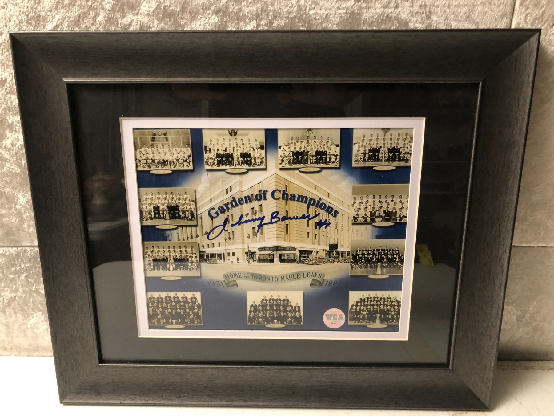 Framed "Garden of Champions" Toronto Maple Leafs 1931-1999 signed Johnny Bauer #7 collector's piece - comes w/ COA