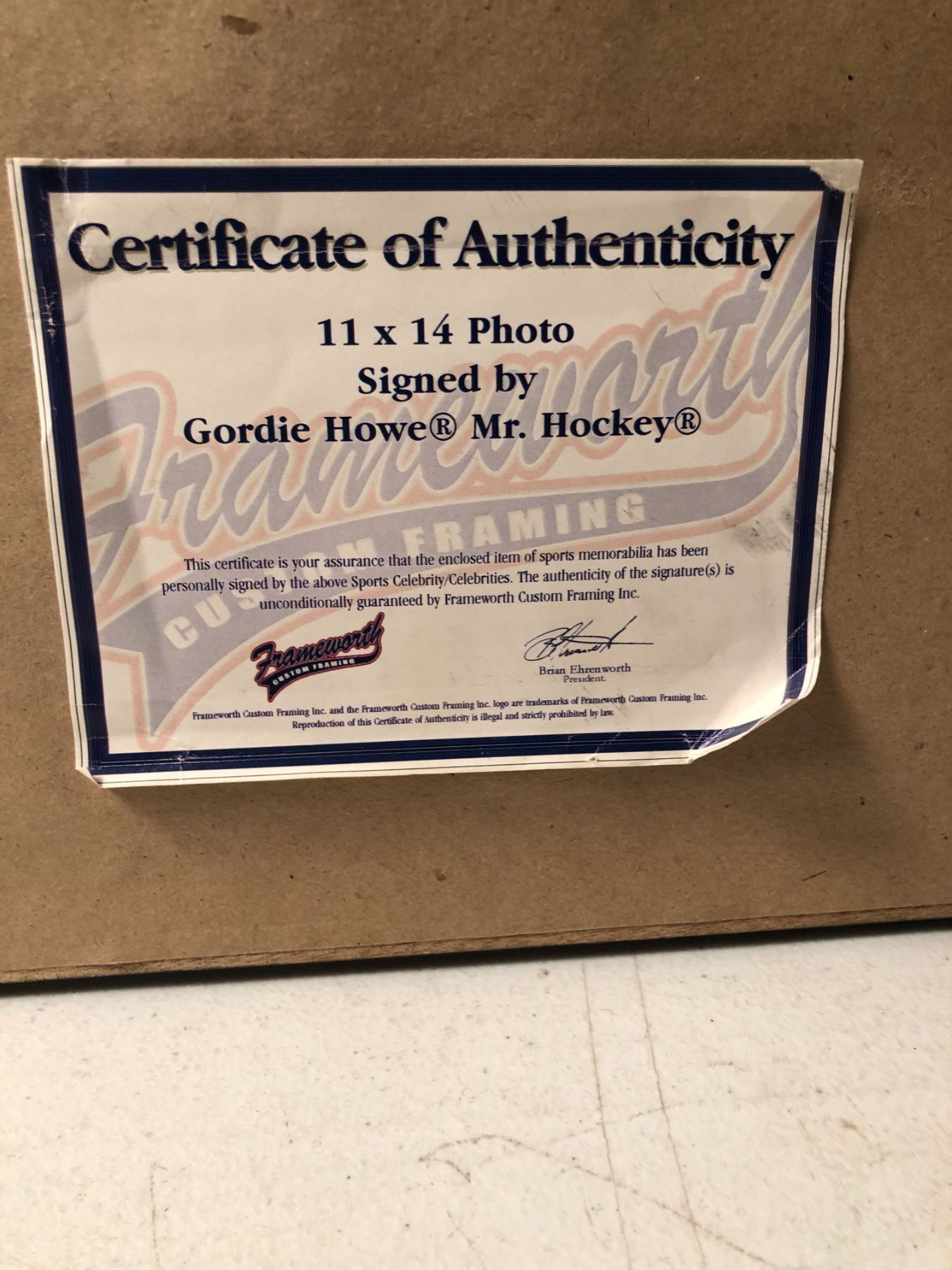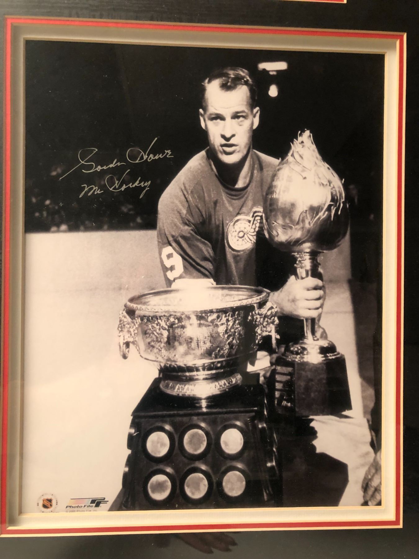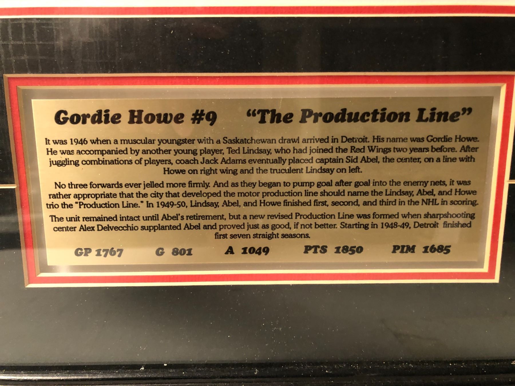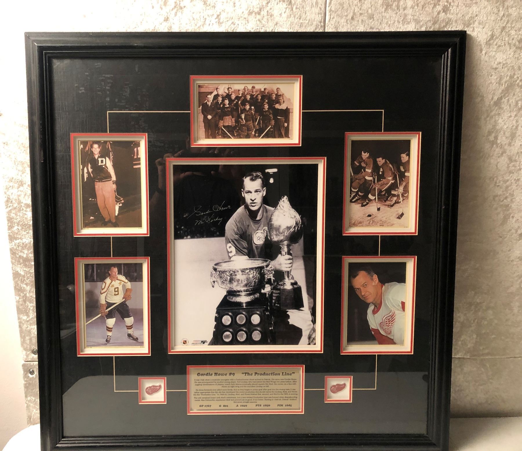 Framed Gordie Howe #9 "The Production Line" Detroit Red Wings NHL collector's piece signed w/ certificate on back 32in x 31in