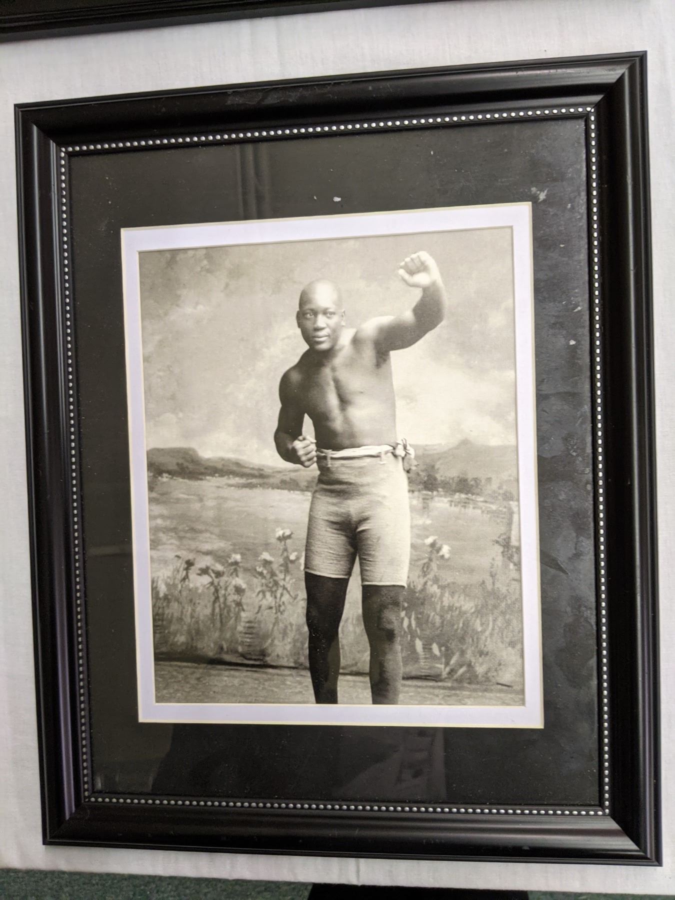 Framed Jack Johnson "Galveston Giant" boxing champion 1908-1915 print (Jack broke the color barrier in boxing) - approx. 16in x 13in
