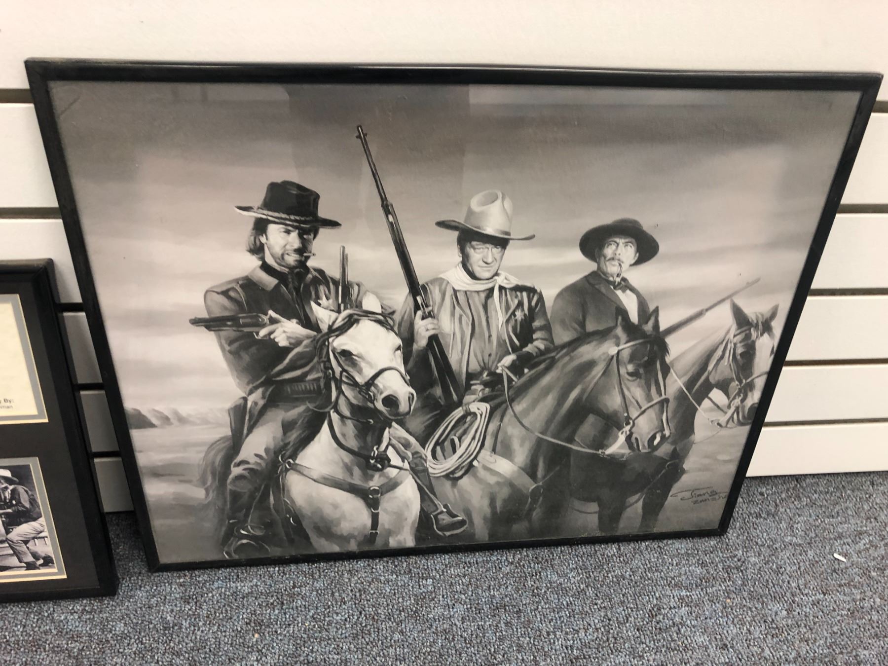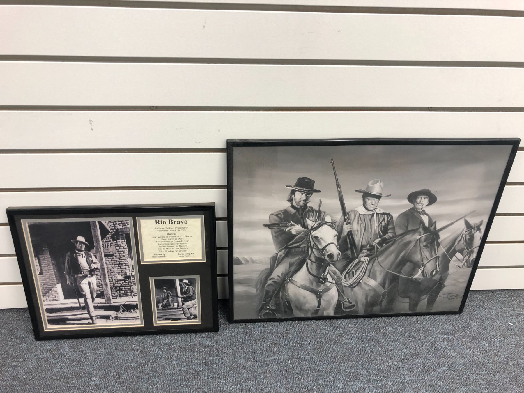 Framed John Wayne "Rio Bravo" collector's photo set & framed John Wayne, Clint Eastwood & Company on horseback print
