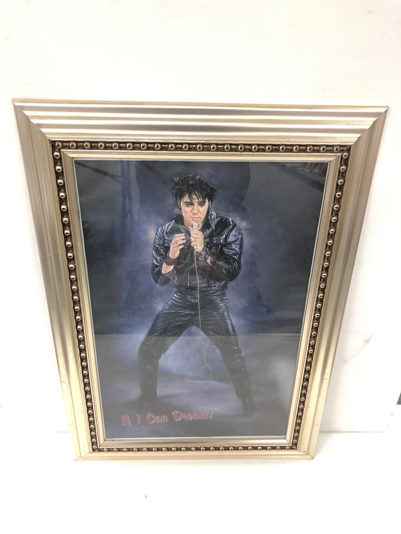 Framed P. Gosselin Elvis Presley "If I Can Dream" print signed by artist dated 7/27/2002 - 24in x 34in