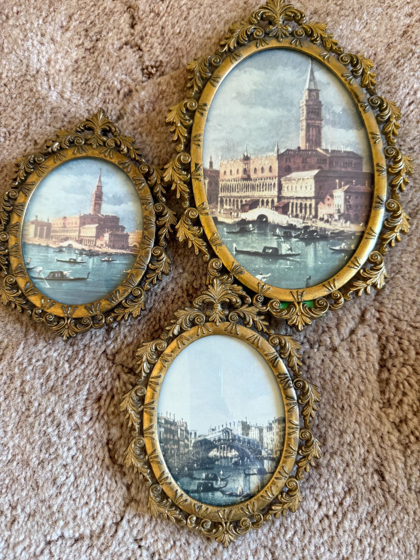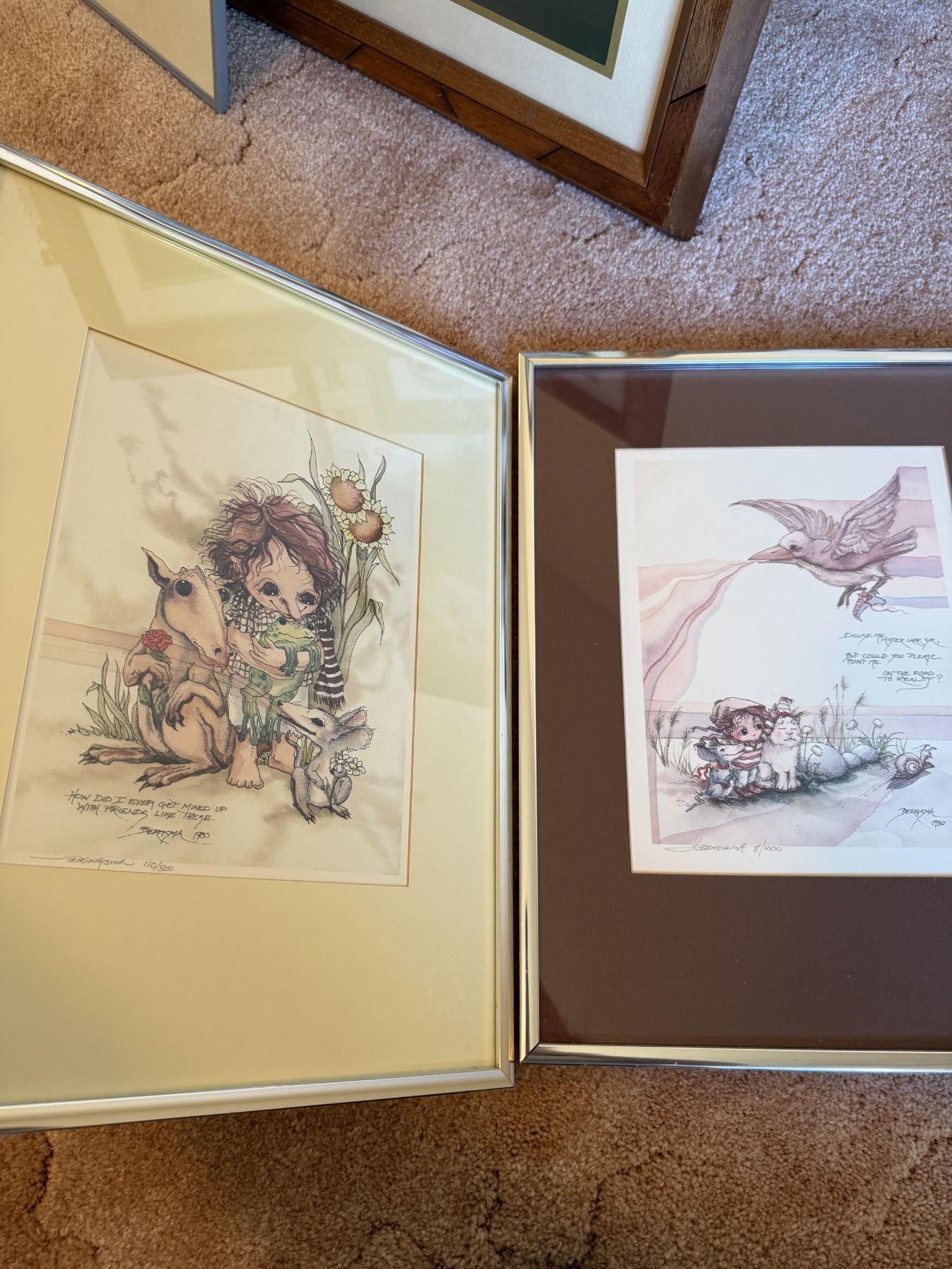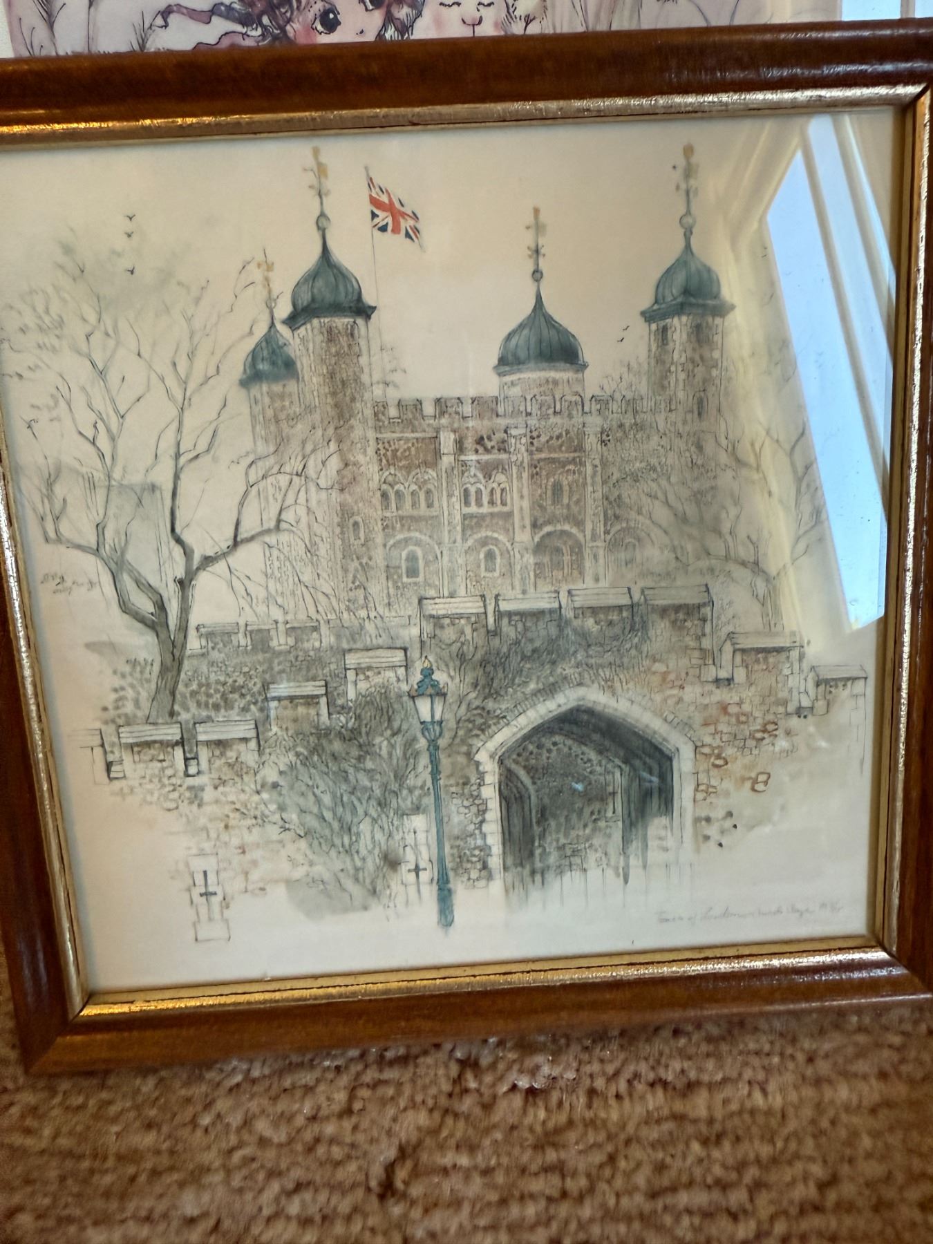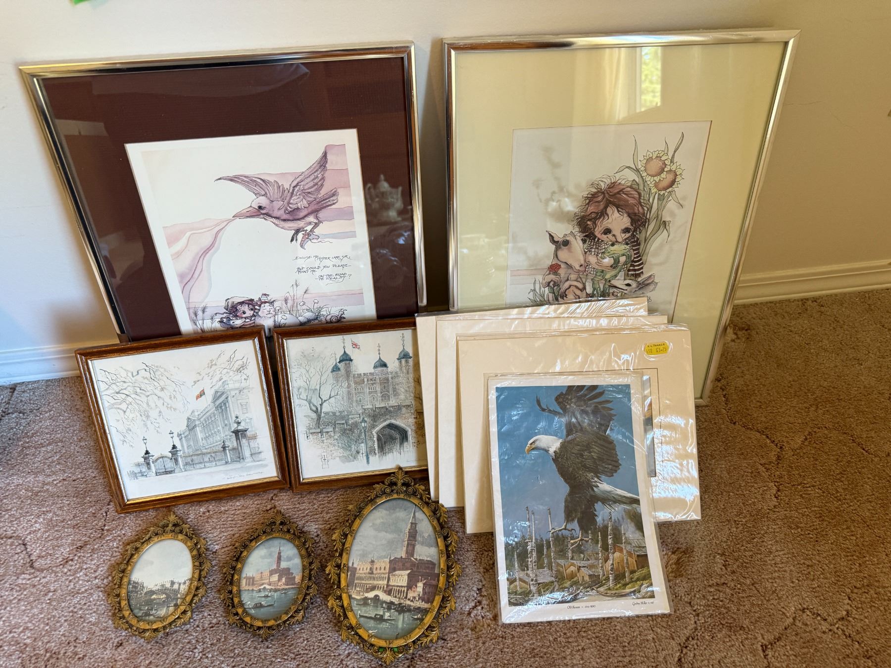 Framed prints of Italy, England, vintage signed Jody Bergsma 110/500. Largest is 16x12".