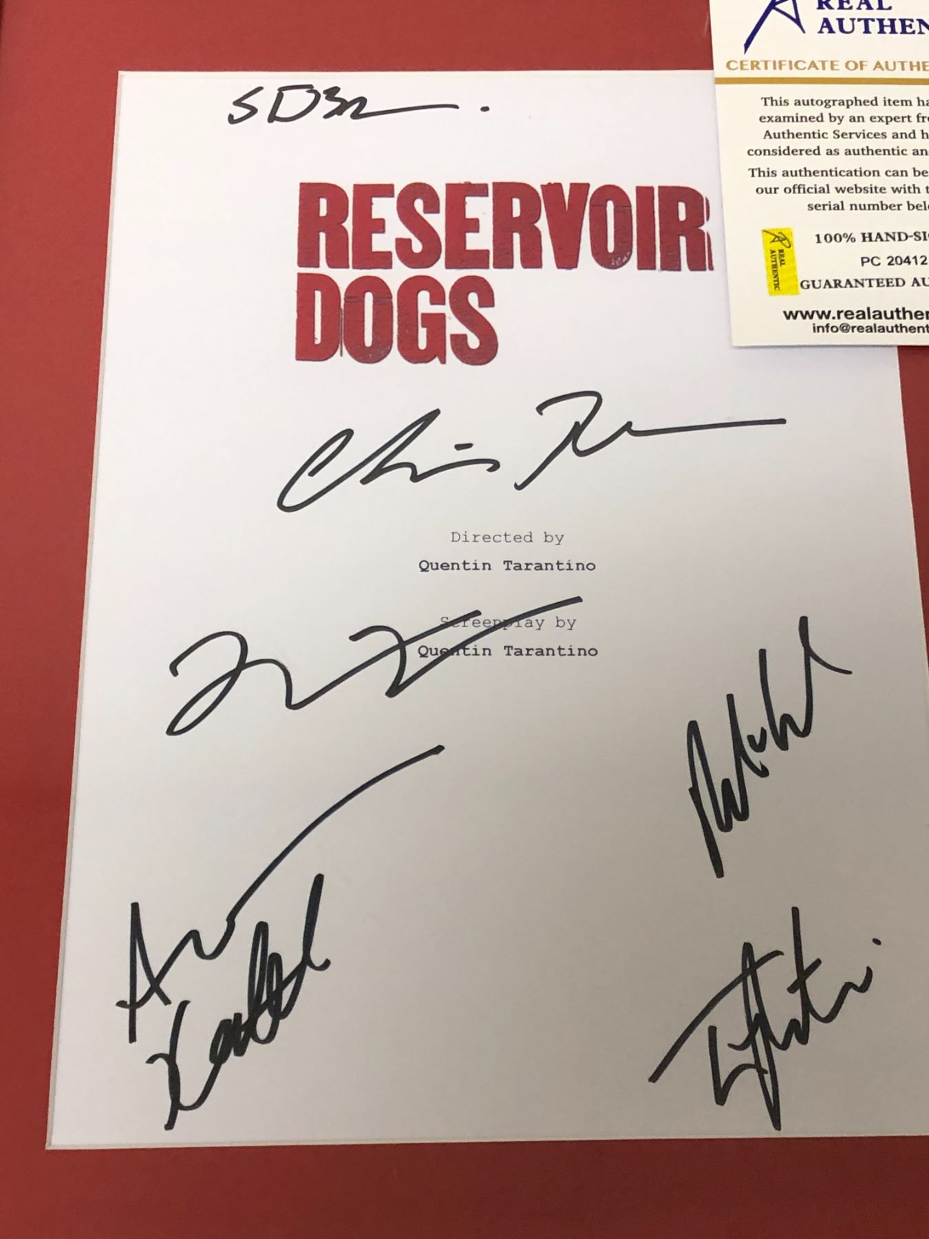 Framed "Reservoir Dogs" Signed Script Cover by Cast w/COA from Real Authentic - includes autographs of Quinton Tarantino/Chris Penn/Michael Madson/TIm Roth & Steve Buschemi