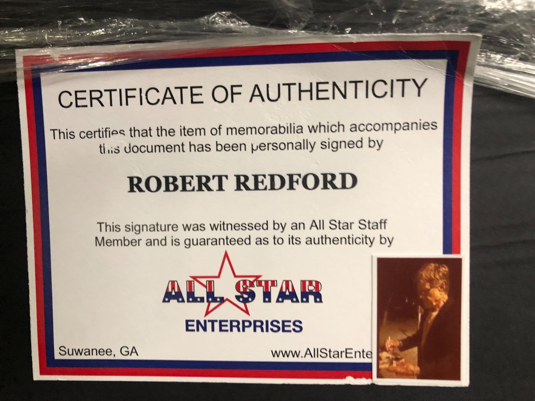 Framed Robert Redford "The Natural" signed collector's piece - comes w/ COA