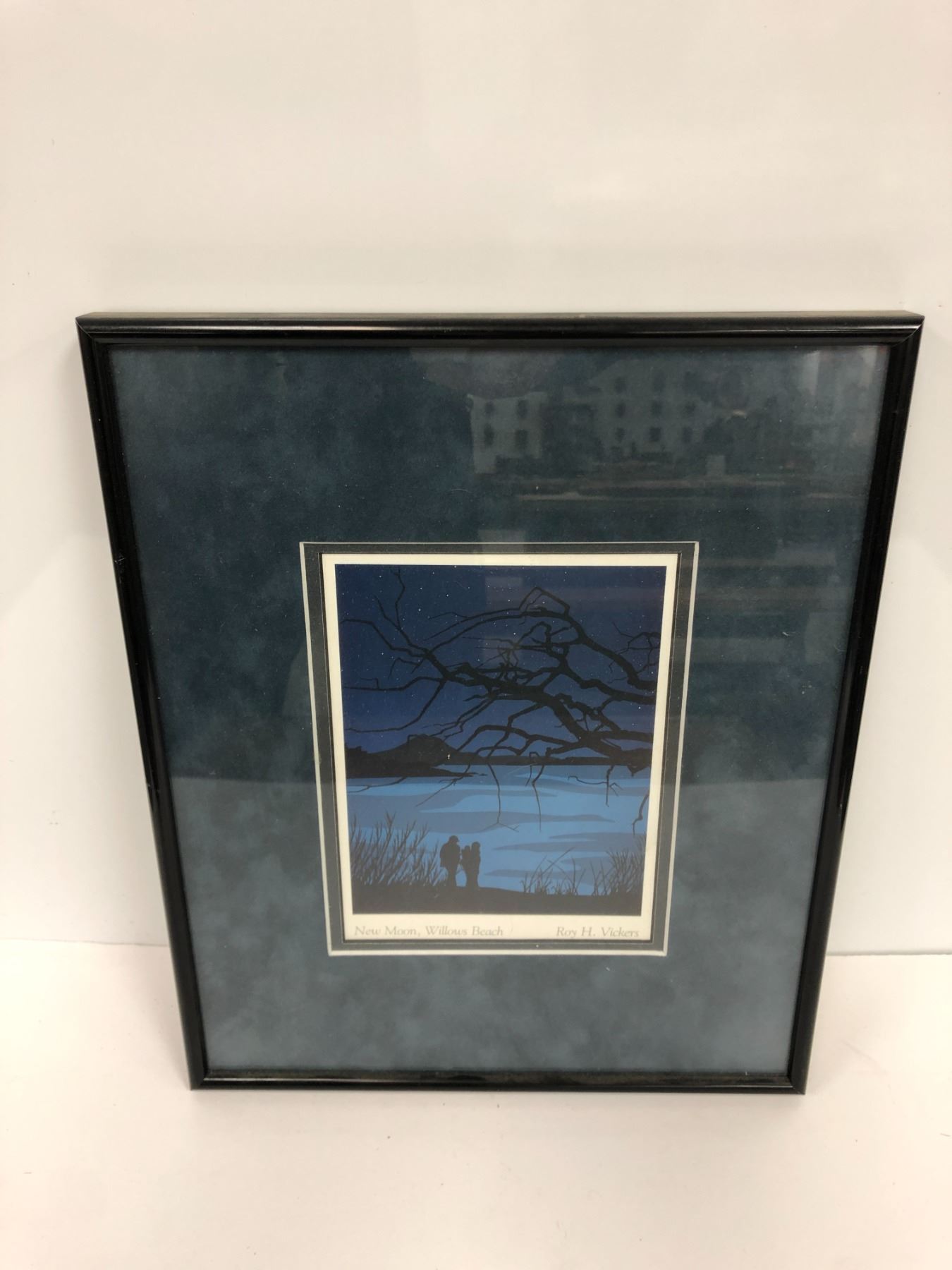 Framed Roy H. Vickers "New Moon, Willows Beach" print - approx. 13 1/2in x 11in