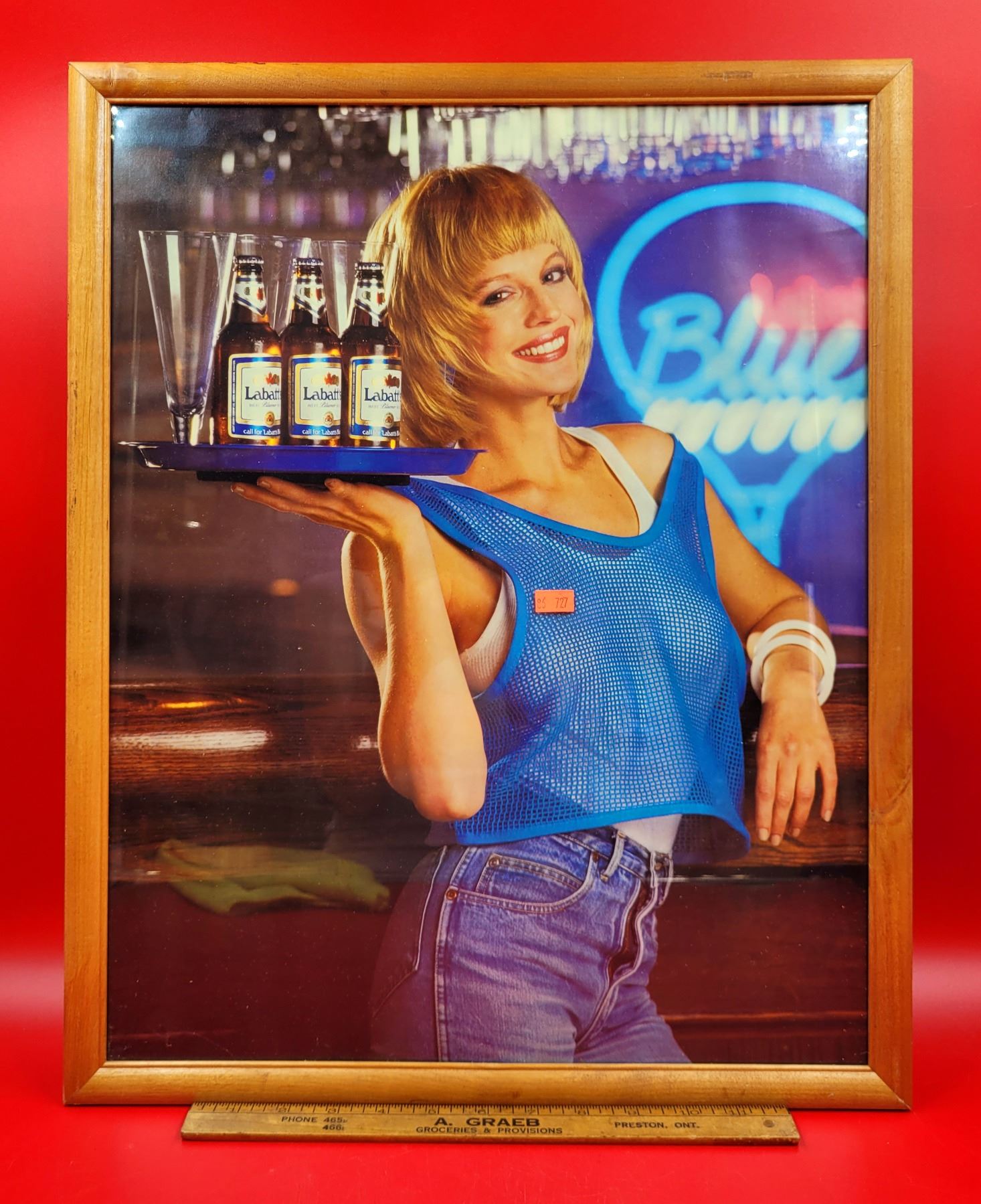 Framed VTG Labatt Blue  Little Girl Blue  Advertising Poster