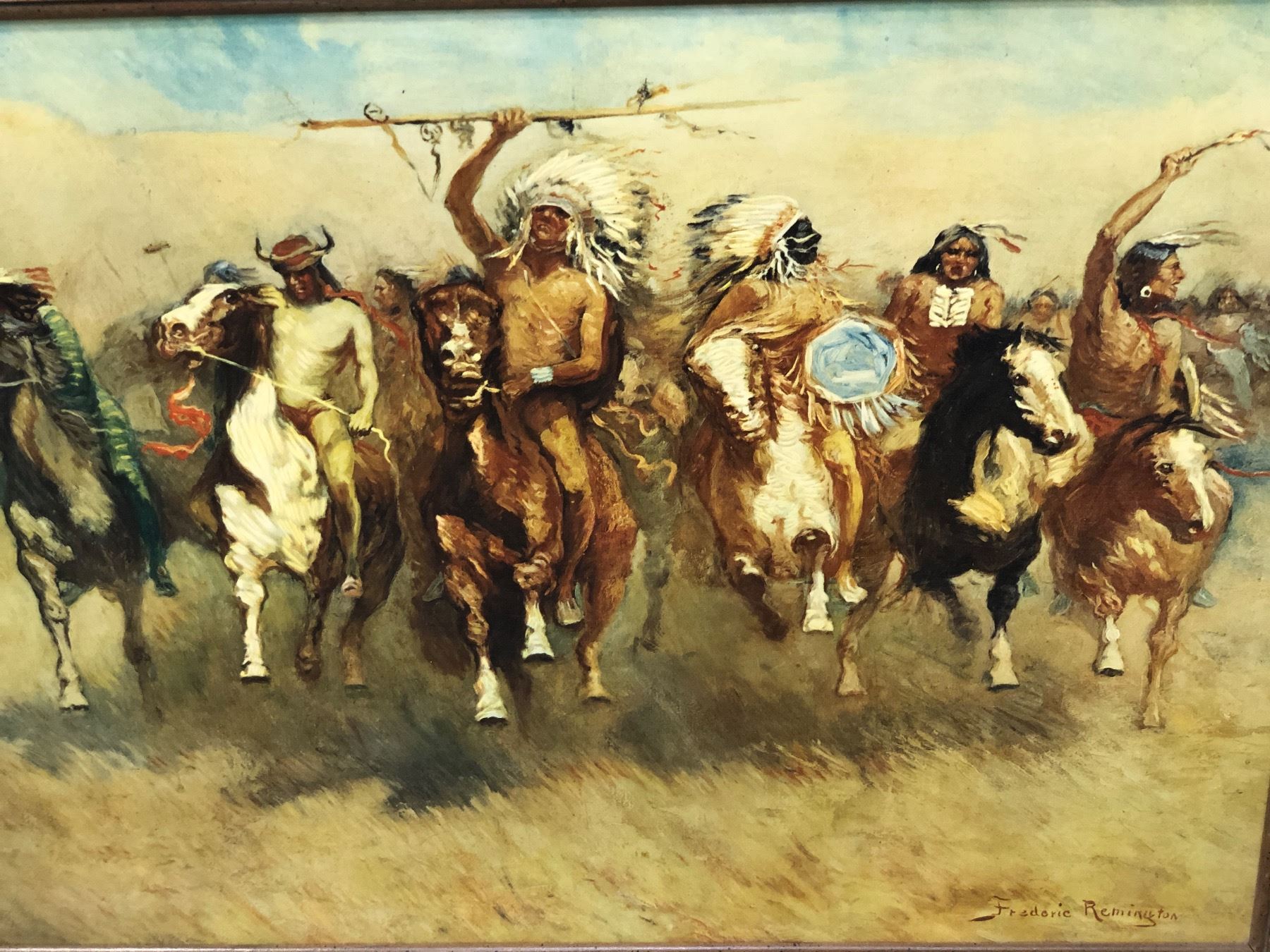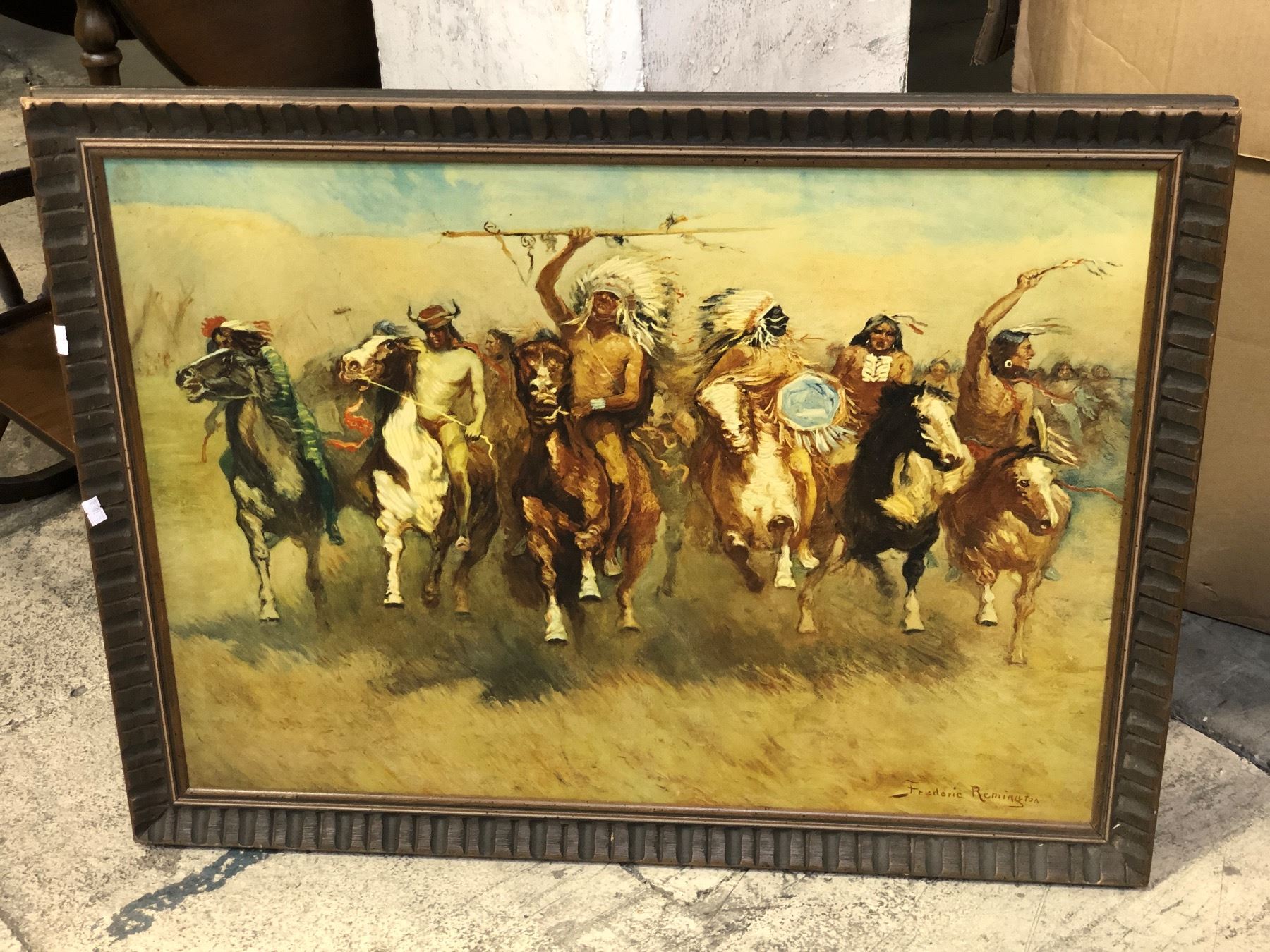 Framed "Victory Dance" print on board by Frederic Remington - approx. 31in x 24in