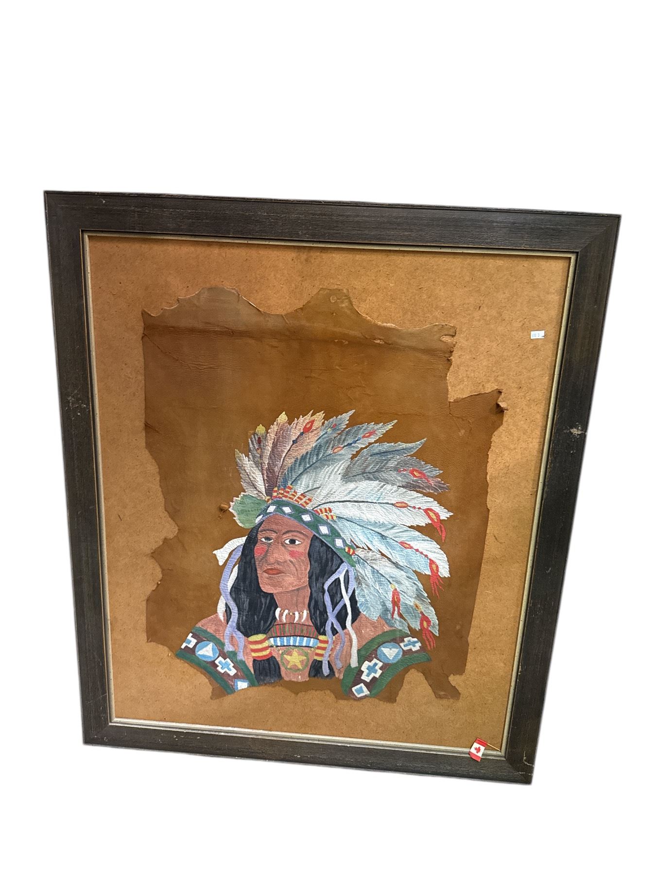 Framed Vintage First Nations Original Painting On Hide