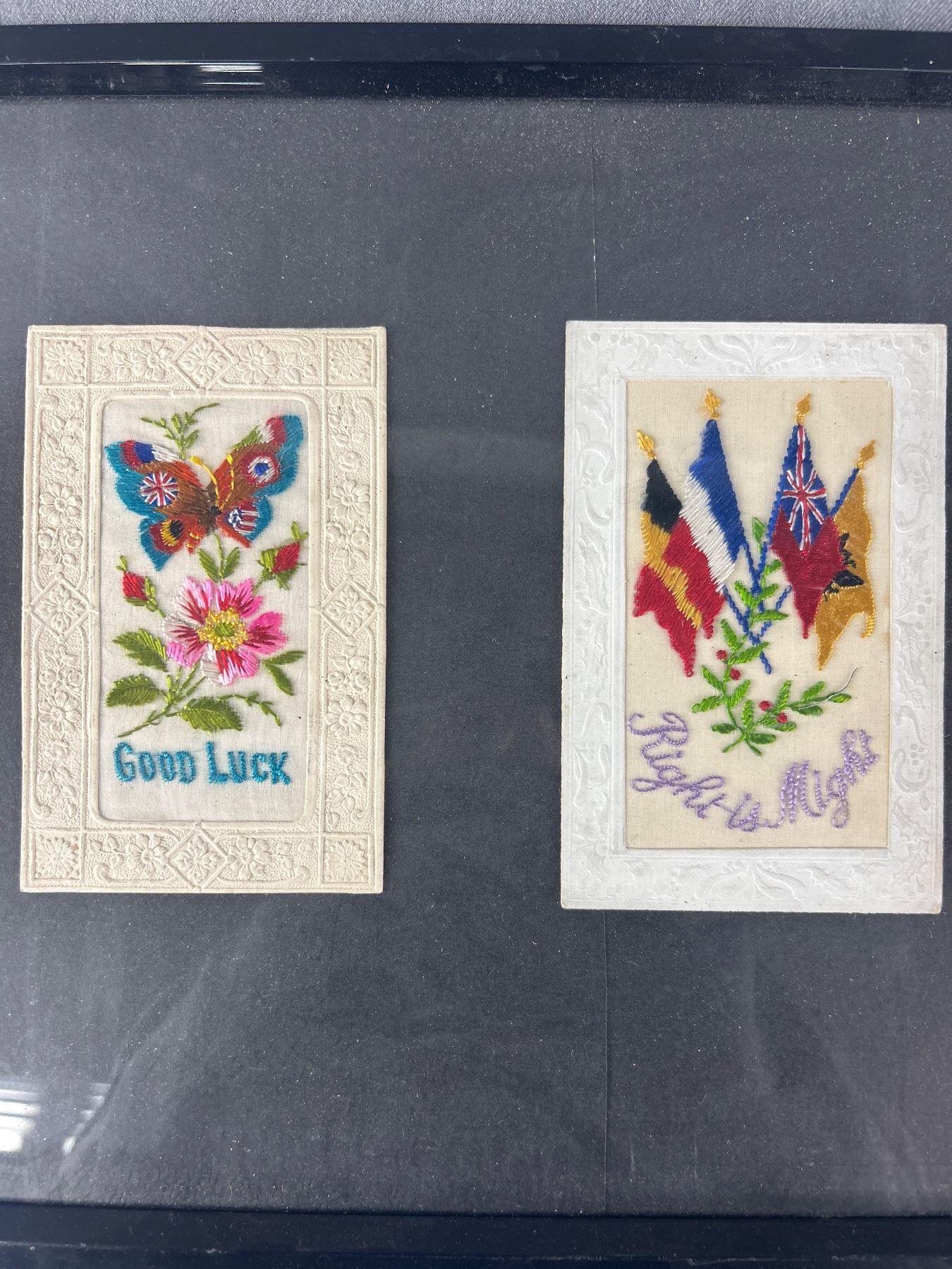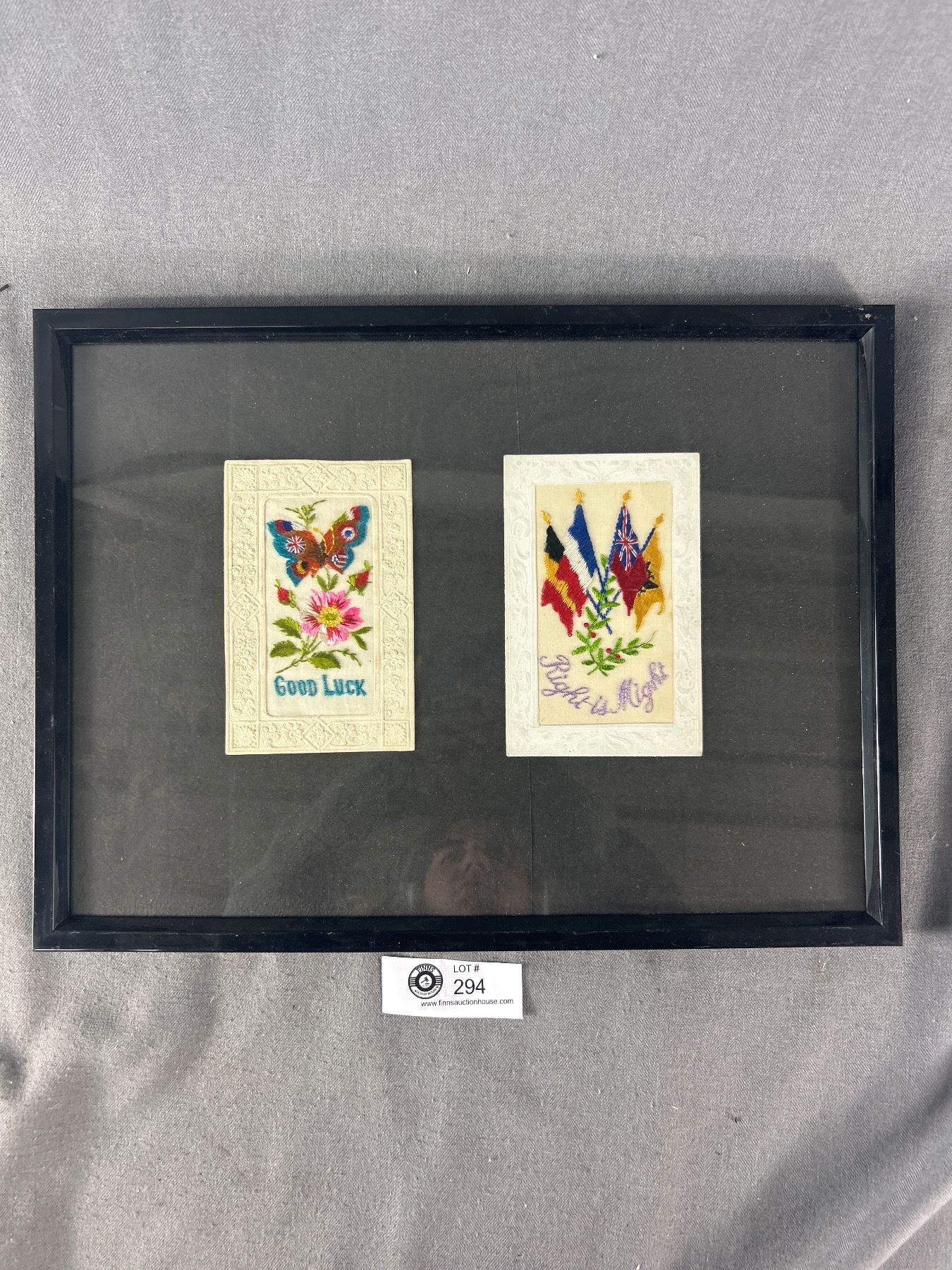 Framed WWII - Buckingham Palace Words Of Encouragement Note & Embroidered Cards